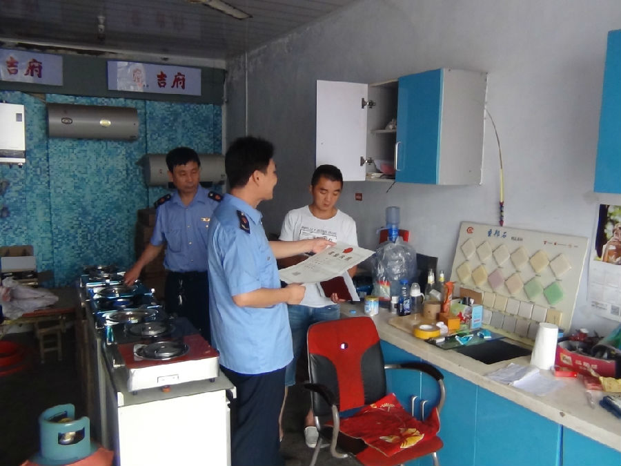 大金店工商质监所对辖区内经营厨房用品的经营户进行了专项检查,重点检查其是否证照齐全,经营的燃气灶、电饭煲、高压锅等厨房用品有无厂名厂址、有无安全警示标志进行了检查。