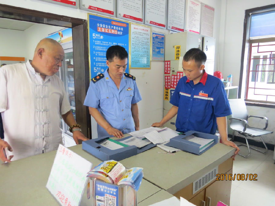 为认真贯彻落实我市大气污染防治动员会议精神,8月2日下午,登封市工商质监局景区分局工作人员来到中石化登封分公司少林加油站,对该加油站成品油经营情况和大气污染防治工作开展情况进行检查。