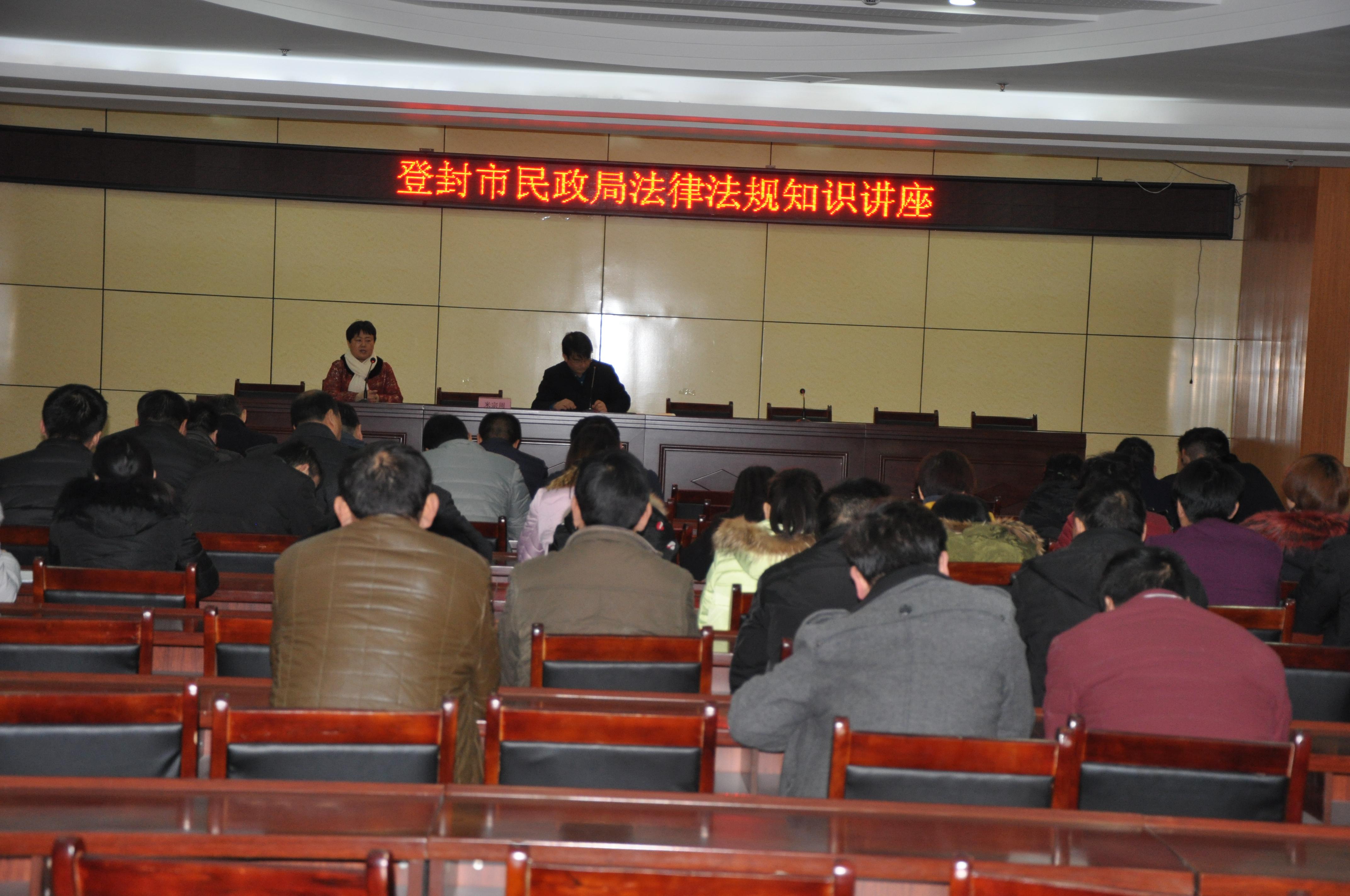 12月23日上午,登封市民政局邀请法律顾问米宗周律师为全体机关干部职工进行了法律法规知识讲座。活动由局党组书记、局长郭亚丽主持,民政局全体班子成员及全体干部职工80余人参加。