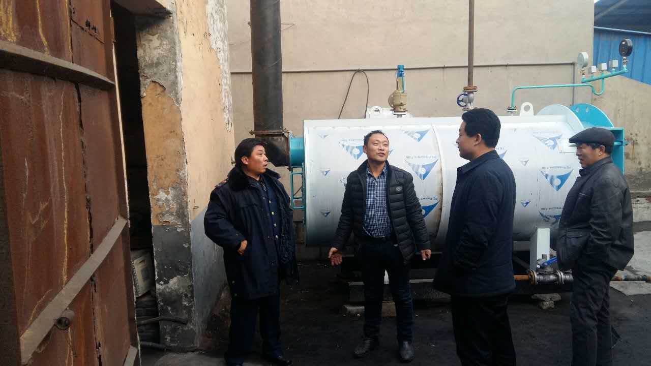 12月28日下午,唐庄乡乡长杨绍峰在工商质监所所长杨东辉的陪同下对两家锅炉使用单位进行现场检查。现场看到两家单位的燃煤锅炉已经拆除,新的燃气锅炉正在安装调试。杨乡长很满意,对工商质监部门为大气污染治理做出的努力表示了肯定。