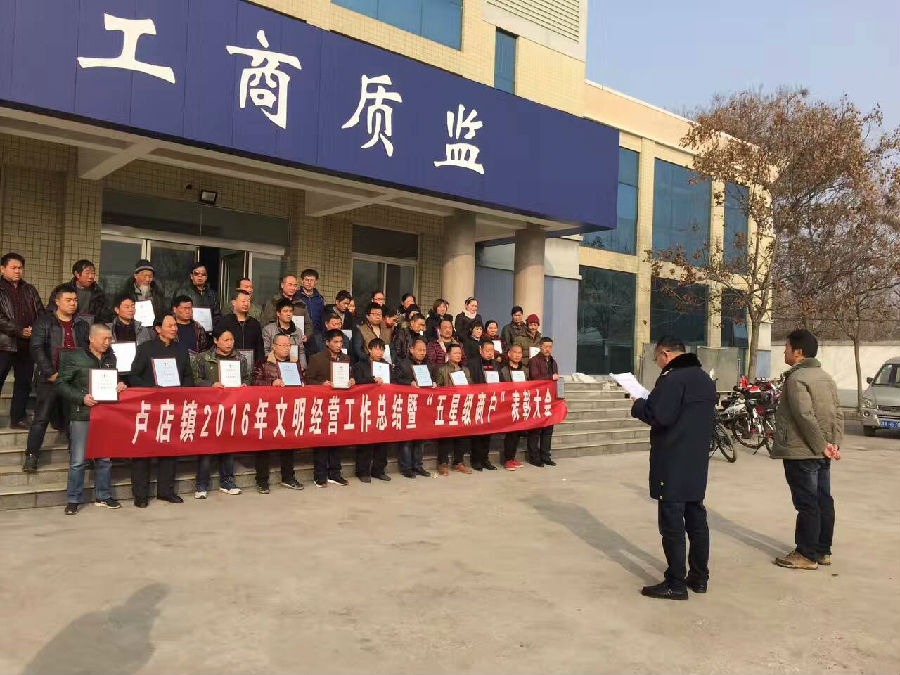 会议总结了卢店镇2016年度文明经营工作;宣读了市工商质监局关于表彰 “五星级商户”的决定;五星级商户代表做了典型发言和表态发言。