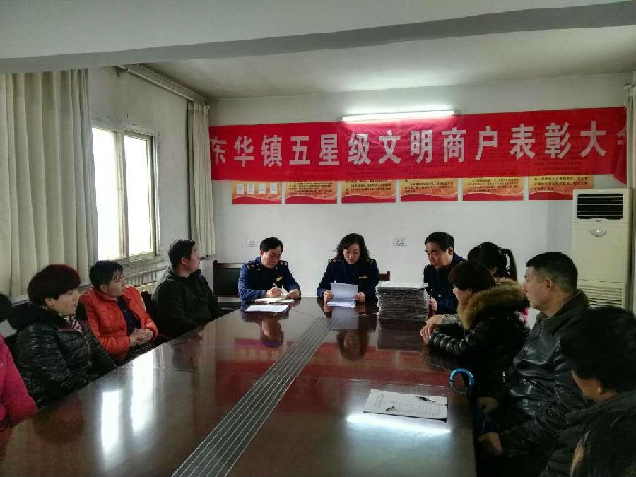2017年1月6日上午,东华工商质监所召开了2016年度文明经营工作总结暨“五星级文明商户”表彰大会。所长郭炎红首先对东华全镇2016年度文明经营工作进行了总结,会上,24家“五星级文明商户”代表全镇142家“五星级文明商户”登台接受颁牌,商户代表郭少辉表态发言。