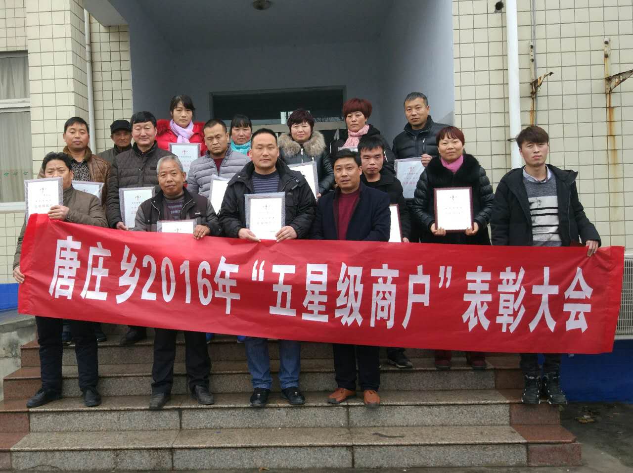 1月5日,唐庄工商质监所召开了2016年五星级商户表彰大会,对被评为五星级商户的商户给予了表彰和授牌,希望他们起到引领带头作用,从而带动整个唐庄乡的商户都尽早达到五星级水平,为地方经济发展做出应有的贡献。