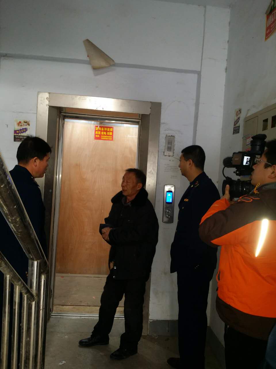 1月15日下午,登封市工商质监局副局长王俊卿和石道工商质监所所长陈智伟对石道镇东新区西华庭小区在用的电梯进行安全大检查,现场该小区负责人段海善配合了工作,现场查看相关的各种手续,该小区手续完善,正常运行。最后,王局长指出:春节将至,你小区一定要做好安全防范措施,确保在用电梯安全运行。