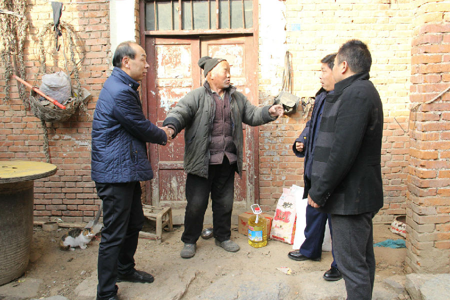 2017年1月11日,登封市工商质监局领导和局驻村工作队人员一起到精准贫困户家中慰问。