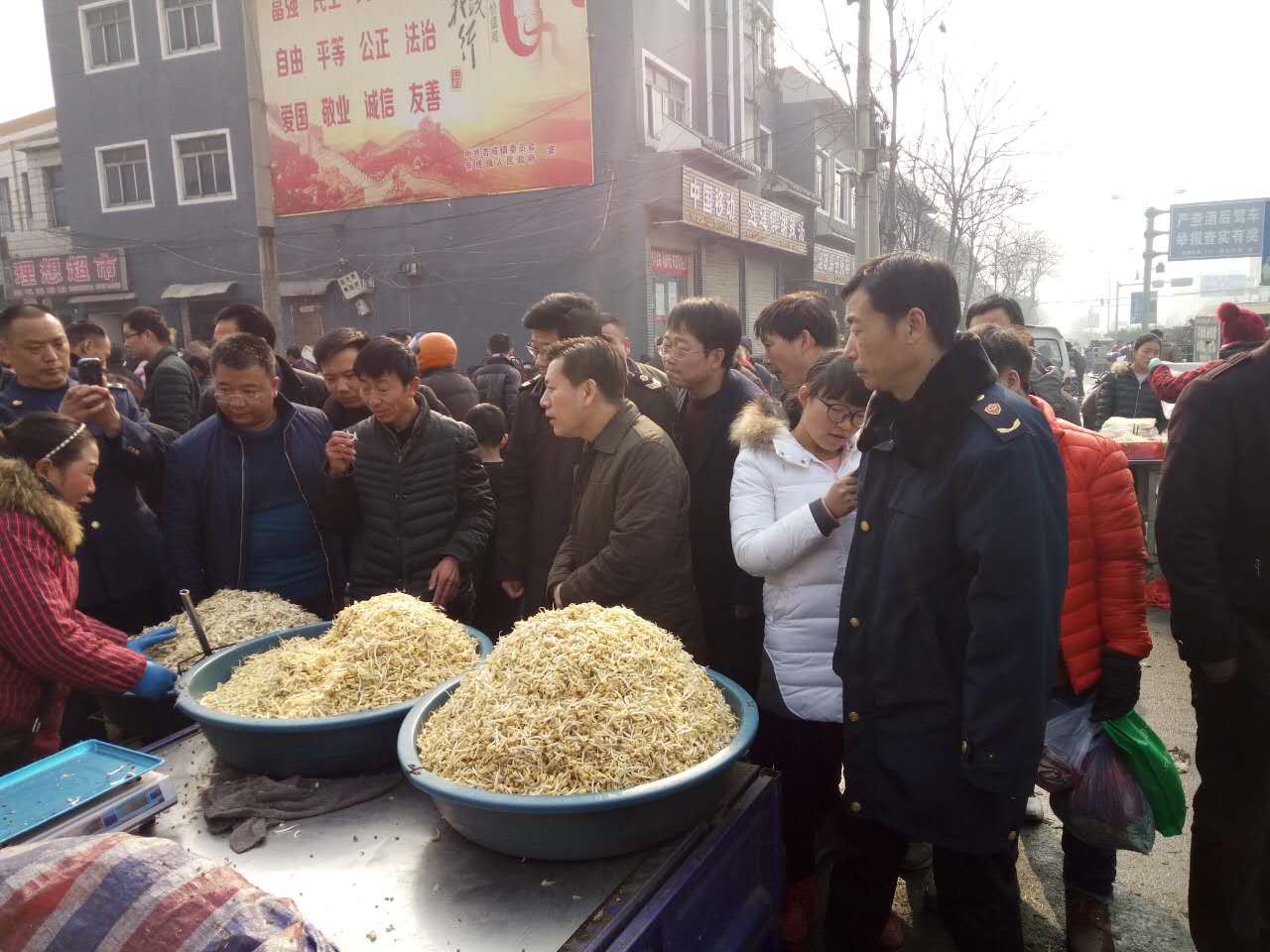 在春节来临之际,为确保告成镇市场的安全稳定,2017年1月25日上午,在告成镇政府的组织下,由何书记带领告成工商质监所,以及其他单位的工作人员,对告成市场进行检查。何书记仔细询问价格、检查商品的质量等,确保市场中没有欺瞒消费者的行为。近日,春节来临,市场人流量巨大,不仅工商质监所加强市场检查,还继续加强与告成镇政府的配合,切实保护好人民群众的利益。