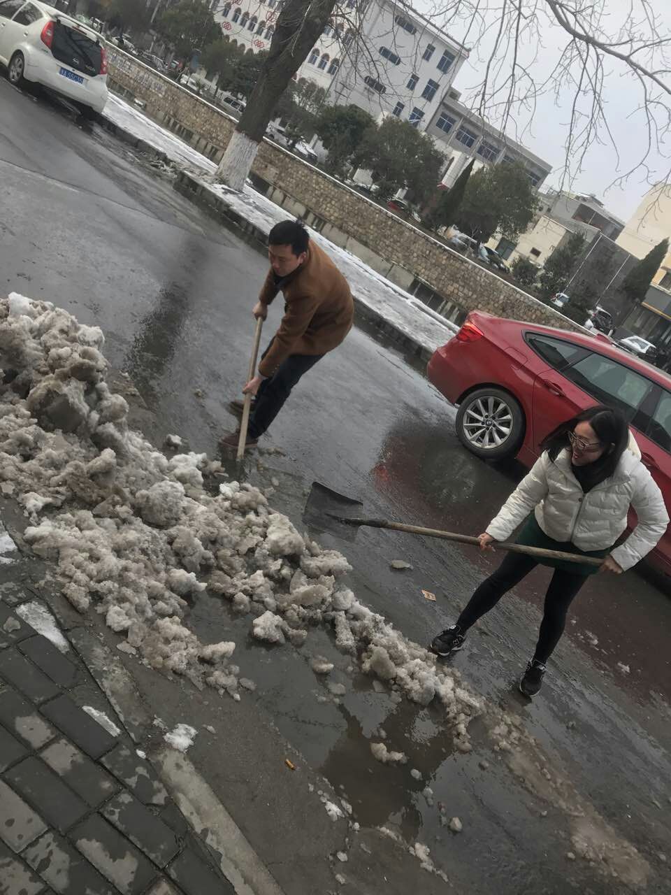 登封市国资办组织干部职工到路长工程路段清扫积雪