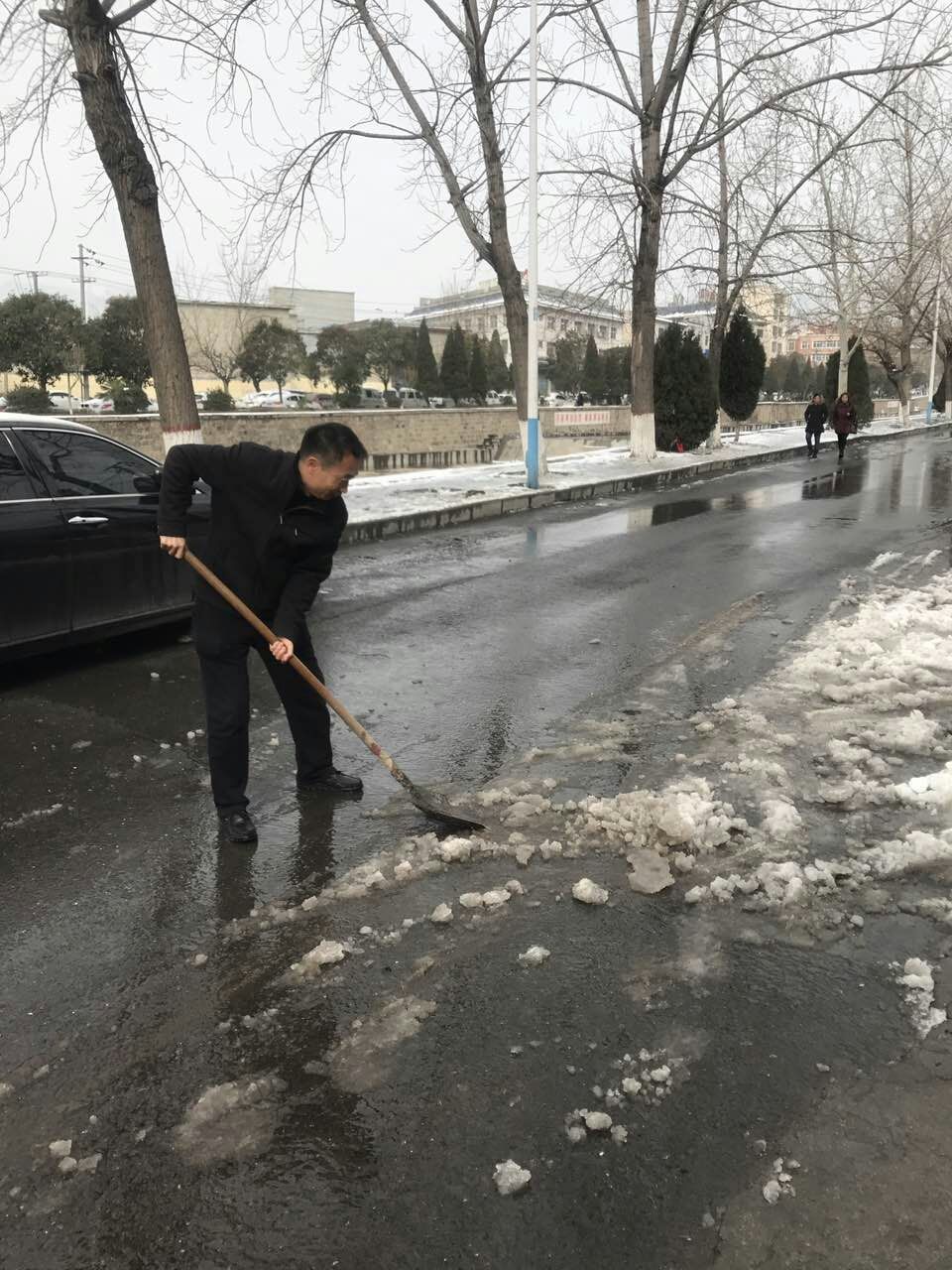 2017年2月22日上午,我办组织干部职工到分包路长工程路段(滨河路 崇高路至大禹路段)清扫积雪,为市民出行和城市卫生做出积极贡献。