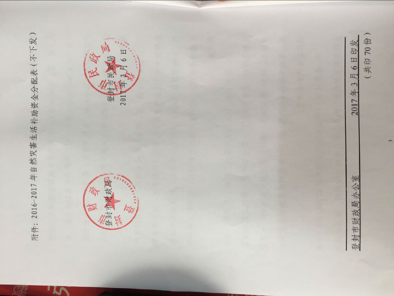 登封市民政局关于下拨2016-2017年冬春生活补助资金的通知
