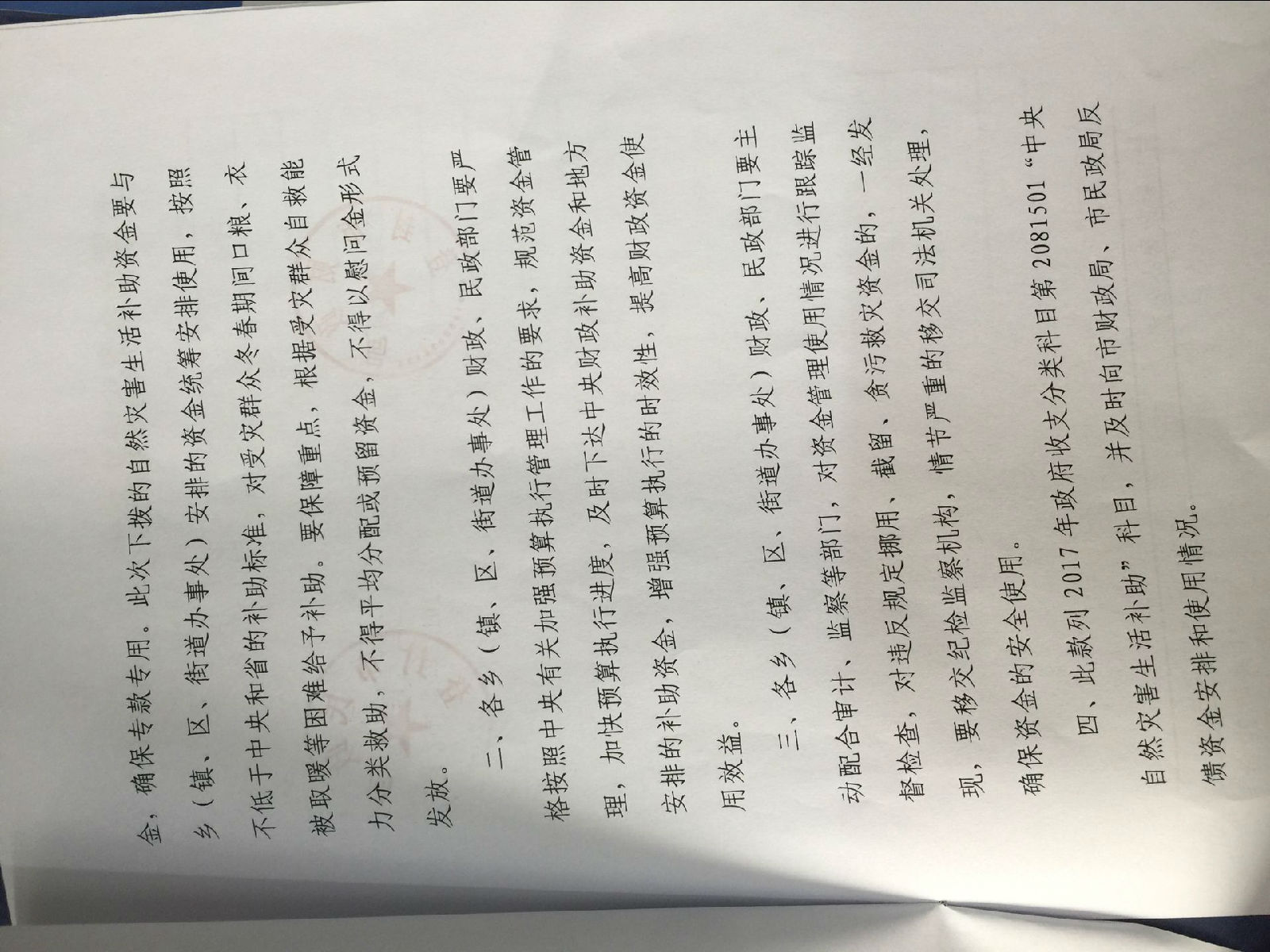 此次下拨自然灾害生活补助资金要与乡镇政府安排的资金统筹安排使用,按照不低于中央和省的补助标准,对受灾群众冬春期间口粮、衣被取暖等困难给予补助。
