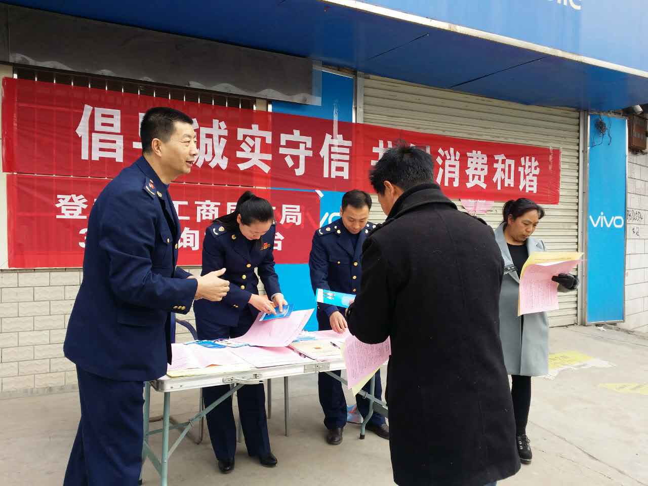 为迎接第35个“3.15”国际消费者权益保护日,石道工商质监所在石道市场人流量集中地区集中开展宣传活动。执法人员以悬挂海报、设置宣传台、发放宣传资料、接受群众咨询和投诉、为消费者讲解《消费者权益保护法》等方式,大力宣传国家保护消费者合法权利、改善消费环境、促进经济发展的政策措施。同时,向商户发放保护消费者合法权益的宣传材料,进一步增强了商户的法律意识和诚信经营的自律意识。此次活动共出动4人次、条幅2条、发放宣传资料200余份、设置展台1台、接到群众咨询12人次,活动取得良好效果。