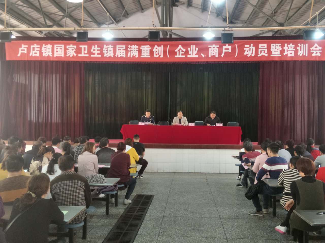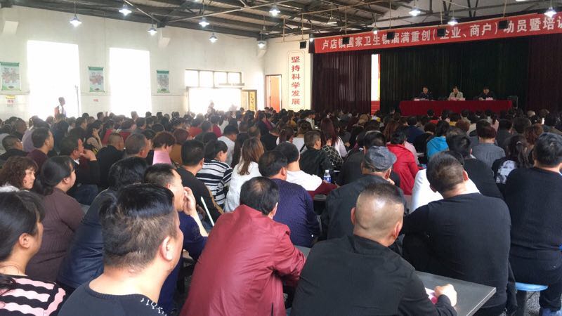 为确保国家卫生镇届满重创工作顺利开展,卢店镇工商质监所配合镇政府于2017年4月14日下午2:30在卢店镇初中会议室召开“卢店镇国家卫生镇届满重创(企业、商户)动员及培训大会”,共有500余家工商户负责人参加。