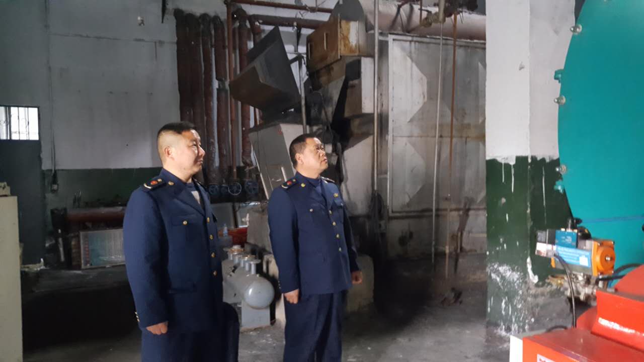 为加强企业特种设备的监督管理,消除生产安全隐患,近日,徐庄工商质监所对辖区企业在用锅炉进行了检查。执法人员检查了在用锅炉的使用登记证、锅炉内部外部及安全阀和压力表检验证书、特种设备安全管理制度、应急预案和司炉人员作业人员证书等资料,实地查看了锅炉使用和管理情况,询问了司炉人员锅炉日常使用和维护的方法及措施,检查中未发现安全隐患。最后,执法人员要求企业管理人员要加强锅炉的日常管理工作,严格按照规范流程操作使用,避免安全事故的发生。