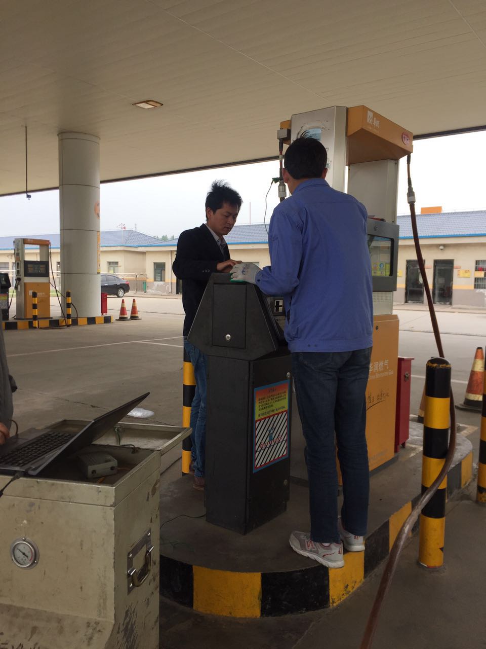 2017年4月25日上午,登封市工商质监局标准计量科受企业委托,邀请河南省计量院周工等一行三人到郑燃燃气公司,对三个加气站的加气机进行计量器具免费检定。企业负责人对“自4月1日起,国家停征所有涉企强制检定计量器具收费”的这一惠民政策,表示大加赞赏,并对登封市工商质监局的贴心服务给予了高度评价。