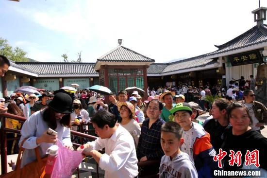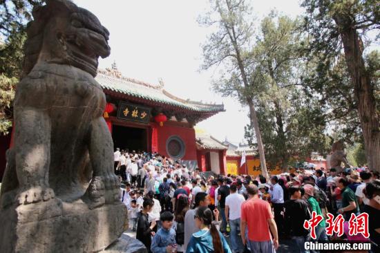 “五一”期间,各地迎来客流高峰。河南登封,禅宗祖庭武林圣地嵩山少林寺,数万中外游客慕名前来,游览千年古刹感受博大精深的少林文化,现场人山人海秩序井然。