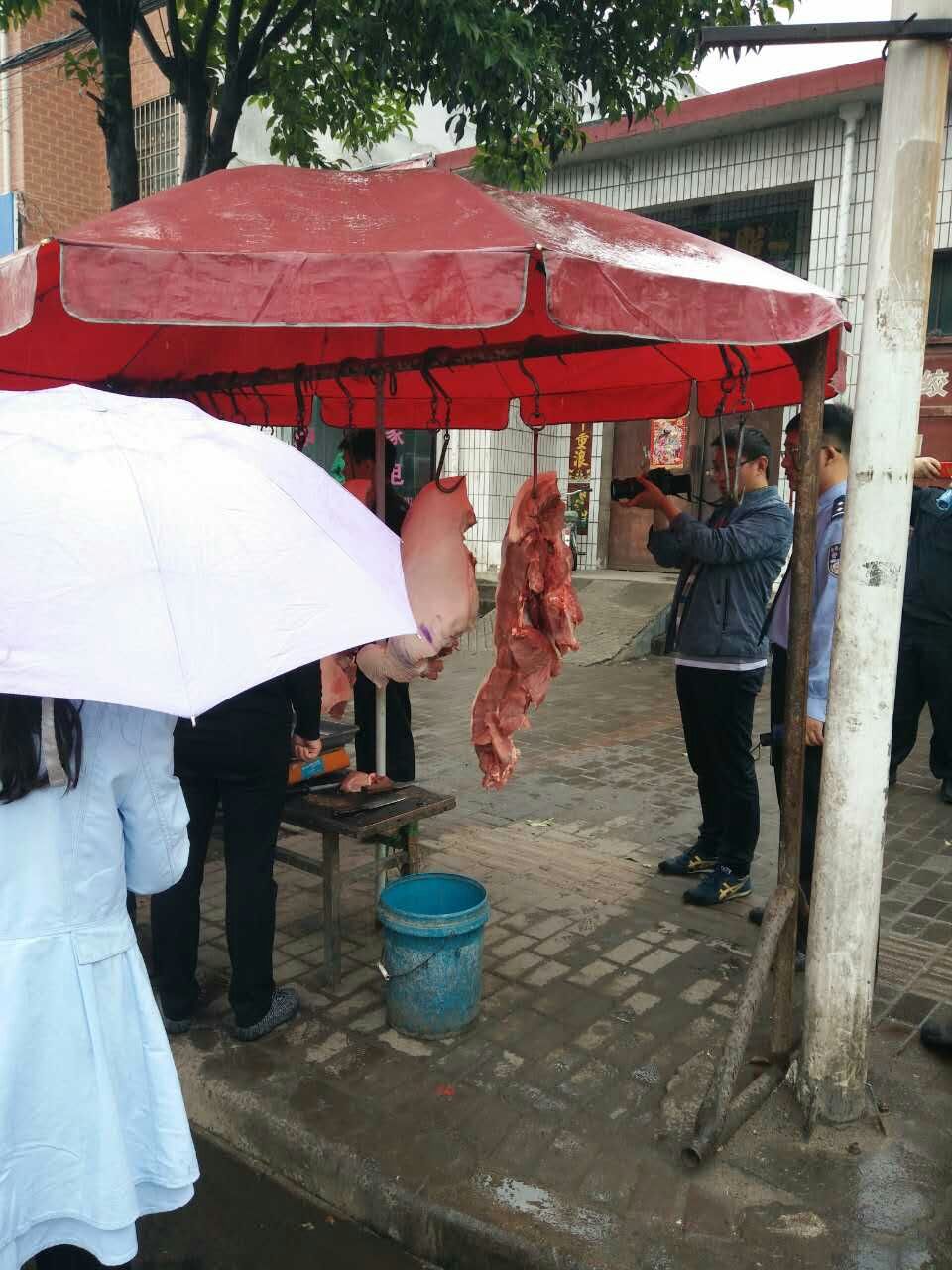 为保障辖区群众的食品安全,2017年5月3日上午,东华镇政府副镇长赵东芬带领食药、畜牧、公安、工商质监等相关执法部门冒雨对辖区生鲜肉经营户进行检查。查出两户生鲜肉食品店存在问题,其中一户证照不全,(食品流动许可证未办理在申报中)一户卫生条件差,责令限期整改。