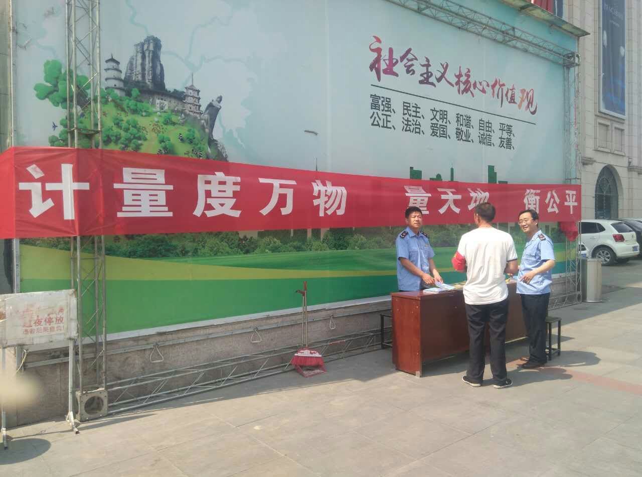 登封市工商质监局嵩阳工商质监所在5月20国际计量日,采取多种形式开展计量知识宣传活动。执法人员在市区万佳时代购物广场活动现场,向市区群众、各大超市、各大医院计量设备使用单位,免费发放计量设备使用知识、法律、法规宣传材料。