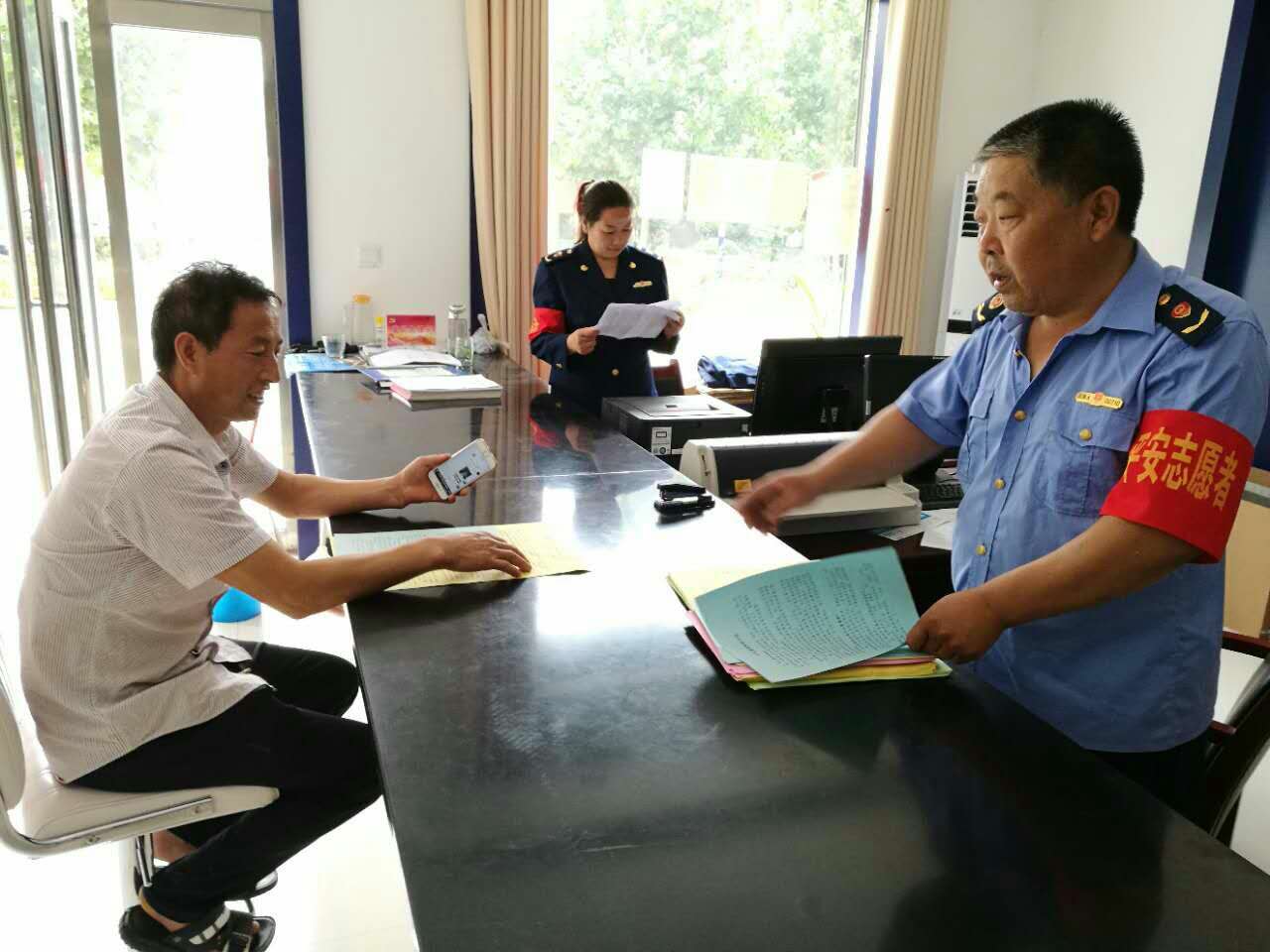 君召工商质监所在平安建设工作中,给每位群众认真细致解答平安建设知识,发放平安建设倡议书,居民安全防范知识等材料,倡导群众积极参与,携手共进,共创平安登封,美丽家园。