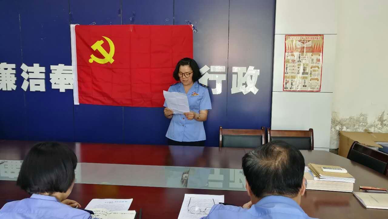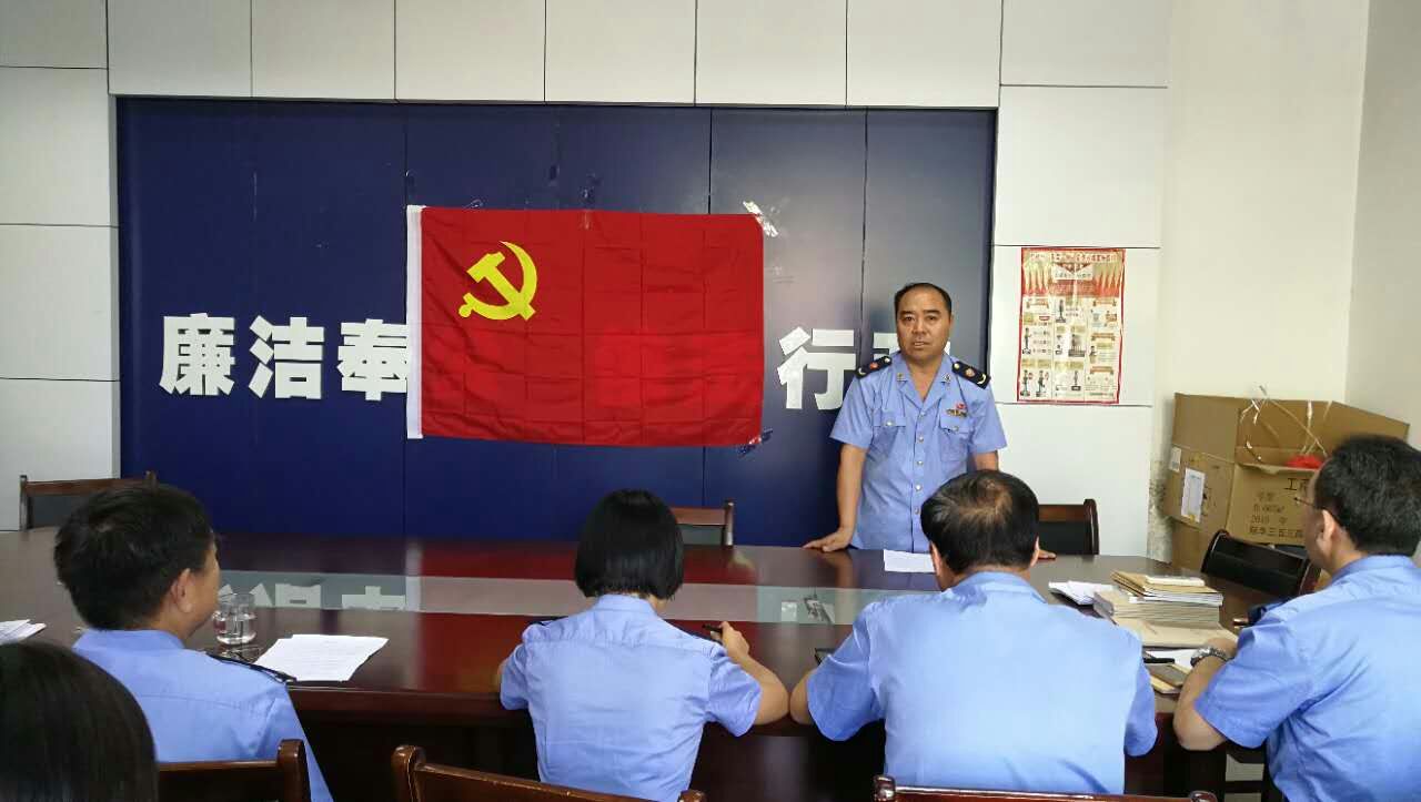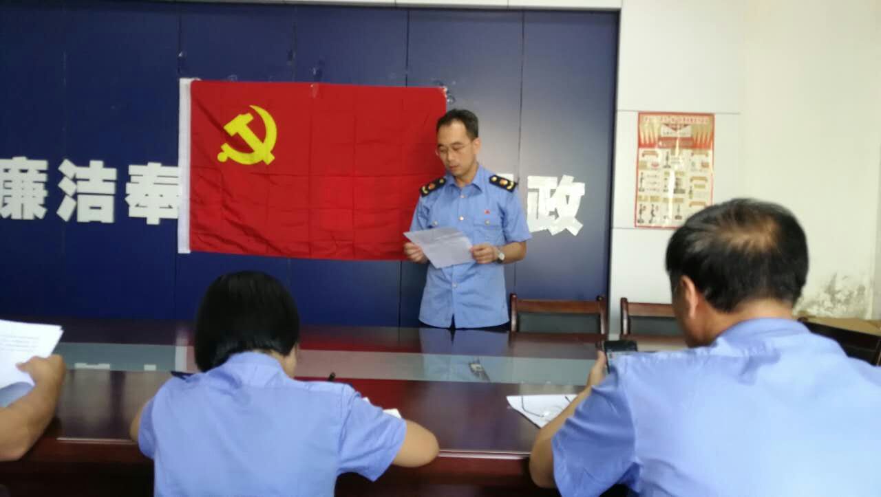 6月16日上午,嵩阳工商质监所全体党员在嵩阳所党支部会议室举行“迎七一,讲党的故事”系列活动。此次活动由嵩阳工商质监所党支部书记杨县生同志主持,全体党员都依次上台,以诗歌、抒情、故事等各种方式进行演讲,表达对党的热爱,对建党96周年的热烈庆祝。