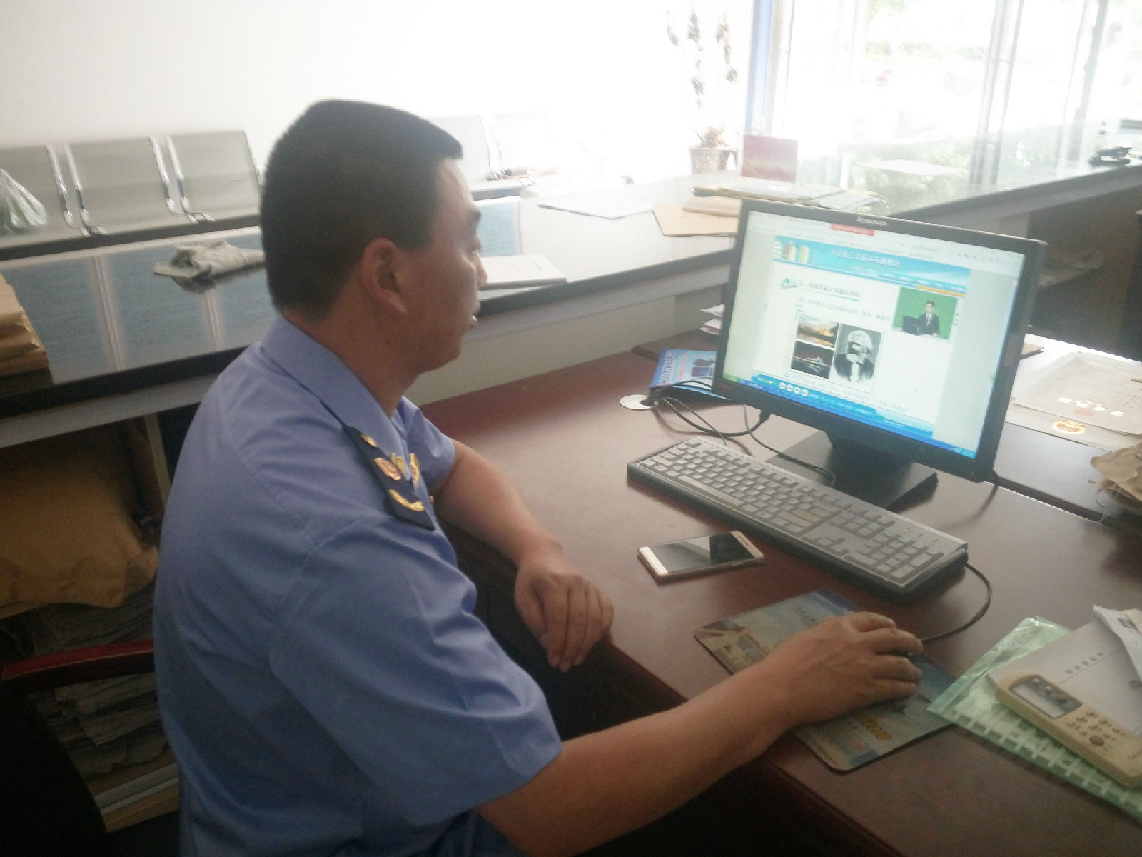 君召所在工作之余,所长带领同志们在网络上学习党章党规,国家政策,理论知识,业务知识。同志们认真学习,热情讨论,积极性高涨。