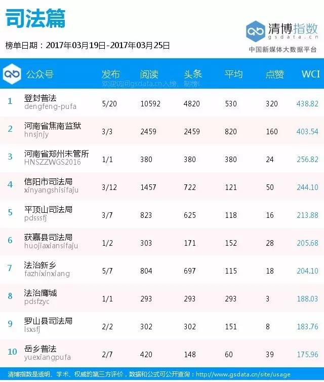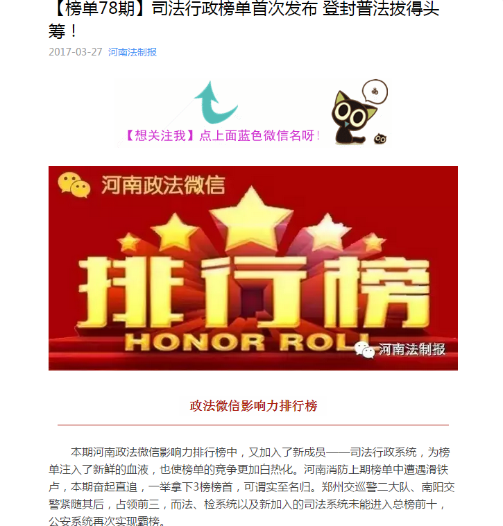 河南政法微信影响力排行榜“登封普法”首秀先拔头筹