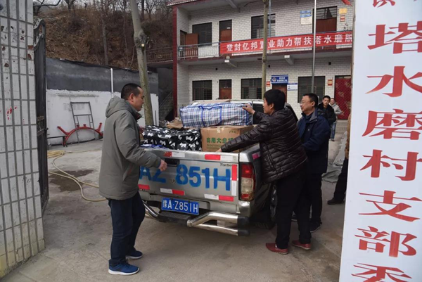 年关将至,天气骤冷,为进一步推进脱贫攻坚工作,让贫困群众度过一个舒心、暖和的冬天。1月30日,嵩管委扶贫工作人员深入到塔水磨村开展精准扶贫“暖冬行动”,为贫困群众送去嵩管委全体干部职工捐献的棉衣、棉被等生活物资。
