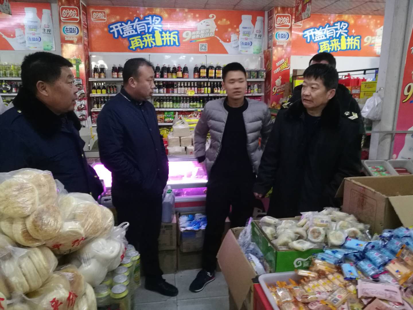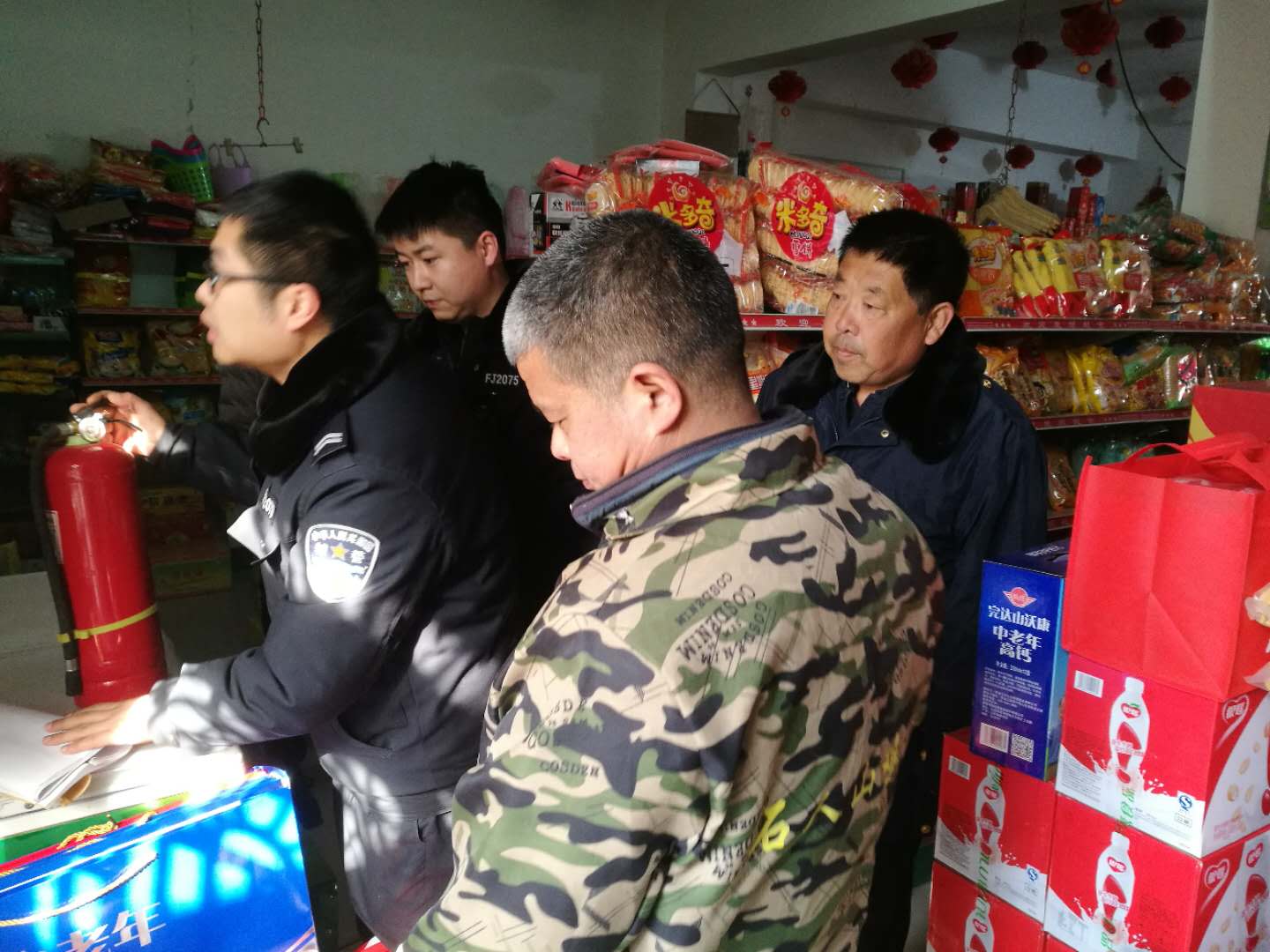 为保障人民群众度过祥和欢乐的狗年春节,创造良好的购物环境,君召工商质监所协同君召派出所、食品药品管理所、君召乡工业办公室、君召乡农业办公室,联合对君召辖区的人员聚集的超市、鞭炮专营店、农贸集市、食品经营户进行消防安全、食品质量、蔬菜供应,交通梳理等进行详细认真的巡查。做好宣传安全防范知识工作,产品质量监督检查及投诉接待工作,维护市场安全巡查工作。及时发现问题,及时督促现场改进,确保人民群众放心购物,高高兴兴过大年。