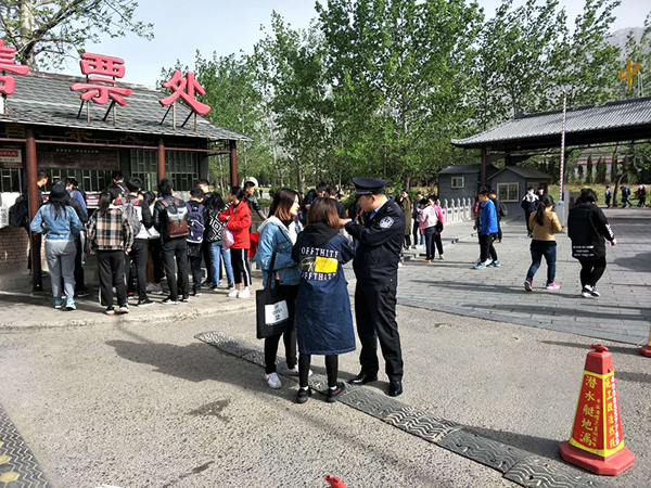 清明小长假期间,公安分局全体民警早上班、晚下班,每天工作都在12小时以上,共接收游客求助64次,追补景区门票57张。由于全体民警的共同努力,小长假期间景区没有发生一起投诉和治安事件,给全市人民交上了一份满意的答卷。