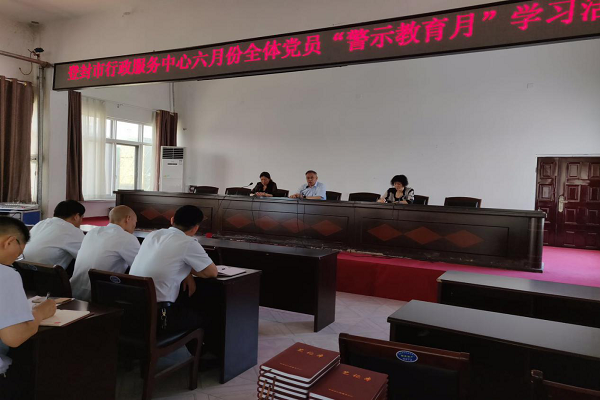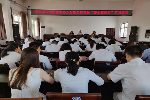 按照《登封市行政服务中心全面从严治党警示教育月活动方案》【登行发 2018 8号】的安排,6月13日上午9点半中心党总支组织中心五个支部全体党员开展全面从严治党警示教育集中学习。首先,在中心五楼会议室集中传达学习了上级领导调研指示:一是传达学习了6月7日郑州市委常委、组织部部长焦豫汝一行在中心调研观摩非公党建时对中心党建工作的指示要求,6月6日登封市领导杨金军、康红阳一行到中心调研情况。二是中心党组书记、主任杨洋传达郑州市会议精神,通报国务院暗访全国政务服务大厅中发现的审批事项进驻不彻底等八类问题,要求全体党员要提高思想认识,提升党性修养,增强自律意识,提高廉洁自觉,充分发挥党员先锋模范作用,立足本职,服务大局,以实际行动投身到行政服务工作。集中传达学习后,以支部为单位进行了学习,各支部精心组织,分别学习了《中华人民共和国宪法》、《中华人民共和国监察法》和《中国共产党纪律处分条例》等内容。