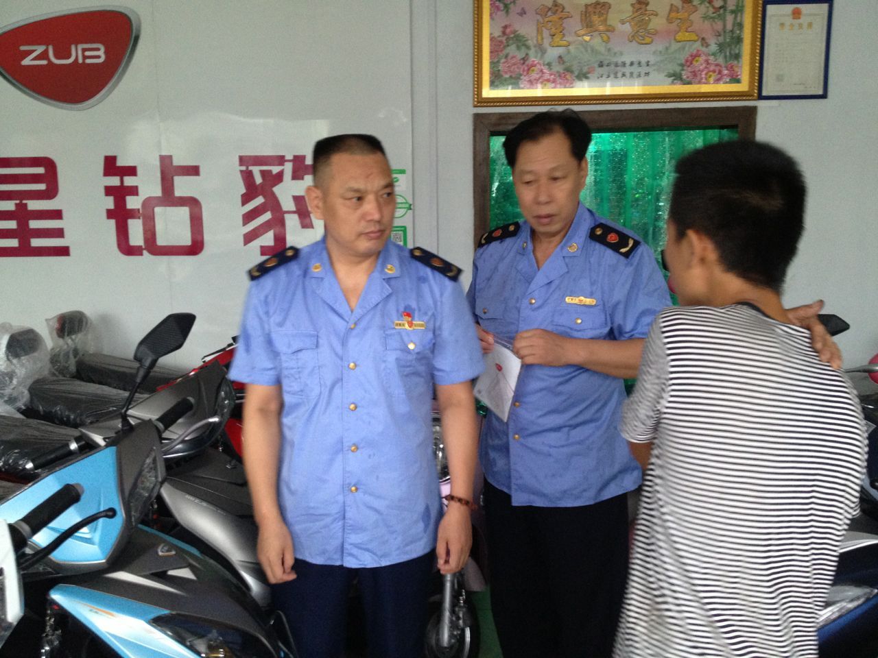 2018年8月28日下午,登封市工商质监局告成工商质监所开展城区道路交通秩序治理,对告成辖区的电动车销售门市进行检查,重点查看了各门市电动车的进销台账,以及电动车的合格证等证件是否齐全,以及在售电动车是否在工信部目录的情况。对不合符规范的电动车销售门市当场责令其停业整顿,待验收合格后方能正常开展经营活动。