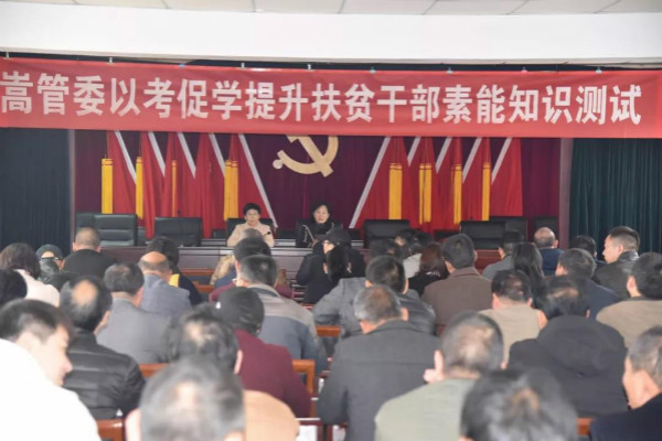 11月7日下午,嵩管委党工委委员副主任贾川、周华芳在四楼会议室组织开展以考促学提升扶贫干部素能知识测试,机关各科室、委属各单位负责人及帮扶责任人等200余人参加了考试。