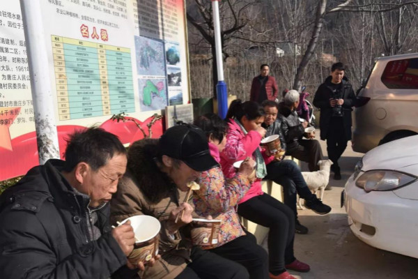 在一片欢声笑语中,大家各显身手,一会儿功夫,饱含着幸福和温暖的饺子就下了锅,飘出阵阵浓郁的饺香,一碗碗热腾腾的饺子送到村民手上。大家一边吃着热气腾腾的饺子、一边畅谈家常,脸上洋溢出了幸福的微笑,充满着喜乐祥和的气氛。