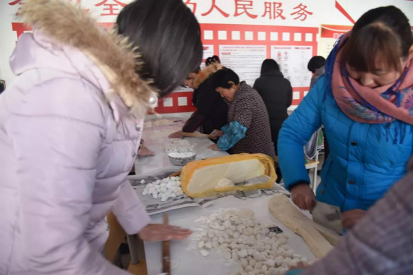 金水区红十字孝慈志愿者服务大队志愿者们、嵩管委驻村工作队与塔水磨村民一起洗菜、切菜、拌馅、包饺子,忙得不亦乐乎,像一家人一样其乐融融。