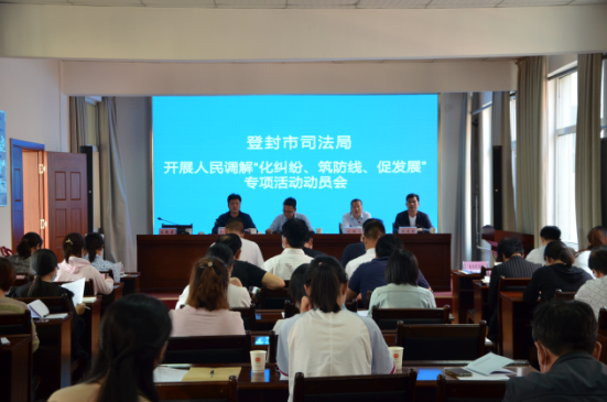 近日,登封市司法局组织召开人民调解“化纠纷、筑防线、促发展”专项活动动员会。记者从会议上获悉,为做好疫情防控后期和疫情后社会矛盾纠纷化解工作,维护社会和谐稳定,促进经济社会发展,5月至12月,登封市司法局将在全市范围内开展人民调解“化纠纷 筑防线 促发展”专项活动。