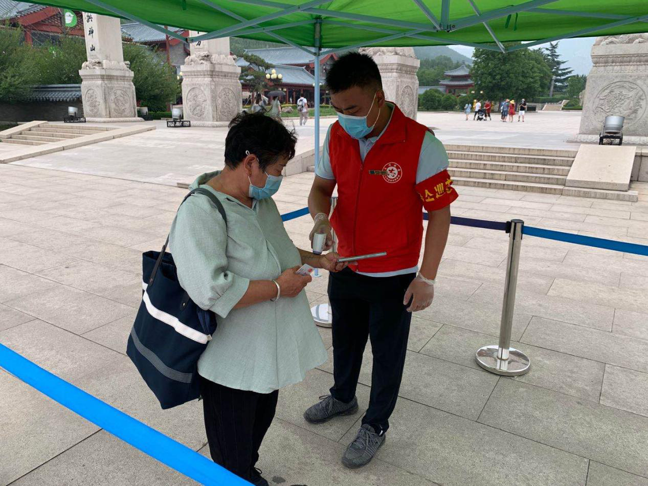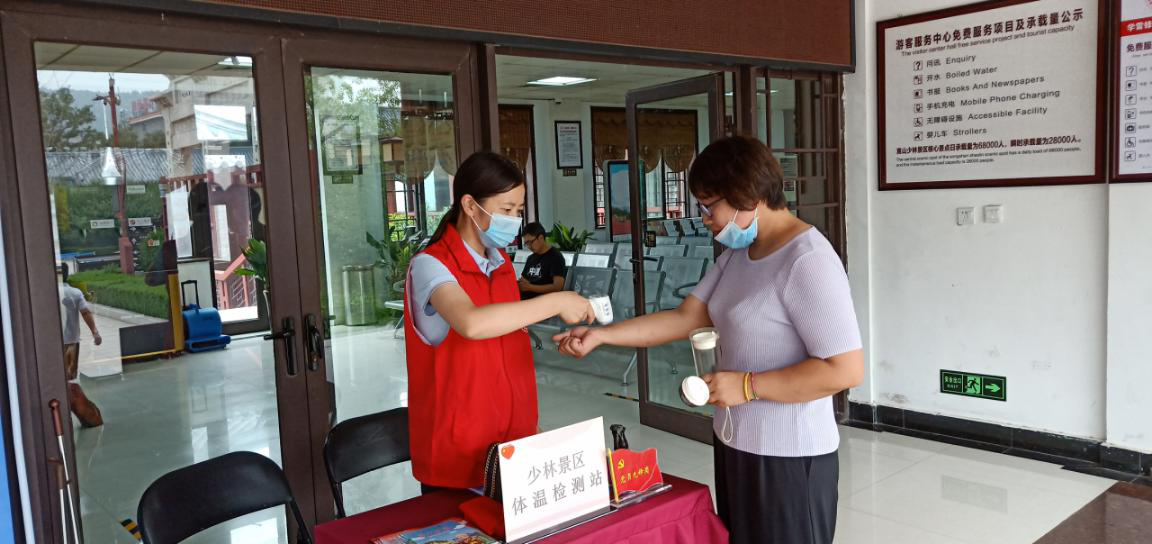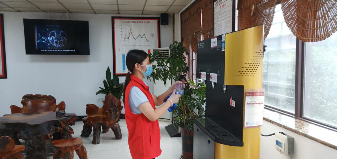 嵩山景区在假日期间采取科学防控疫情手段。每天定时对游客中心、观光车、休息区等旅游接待场所以及基础设施实行一日三次的环境卫生消杀。同时,按照“先扫码量体温再入园”的防疫要求,在景区入园及游客聚集处,设置多个游客分流通道,引导游客快速自助入园,有效的分散了人流,加快了游客的进园速度。