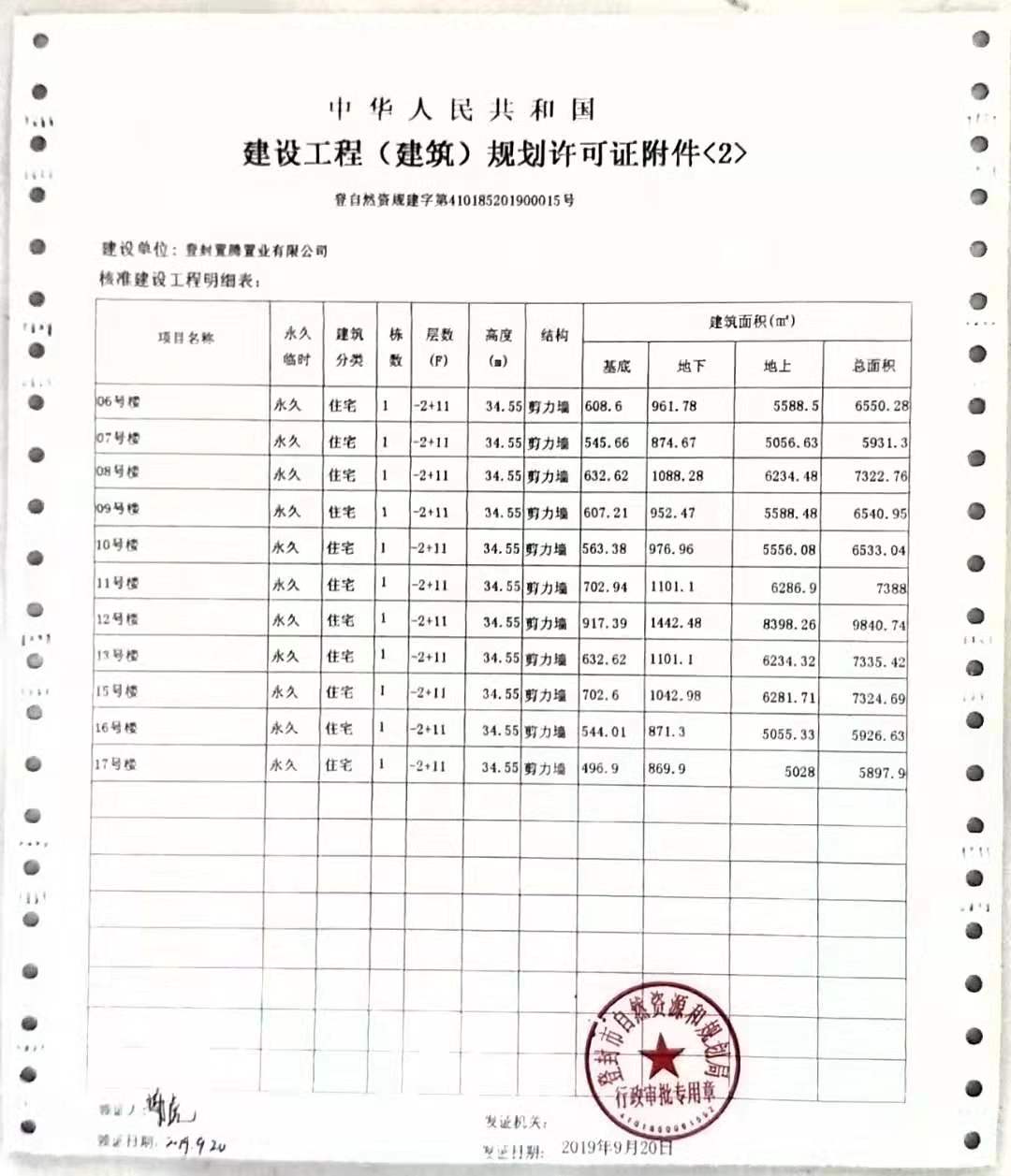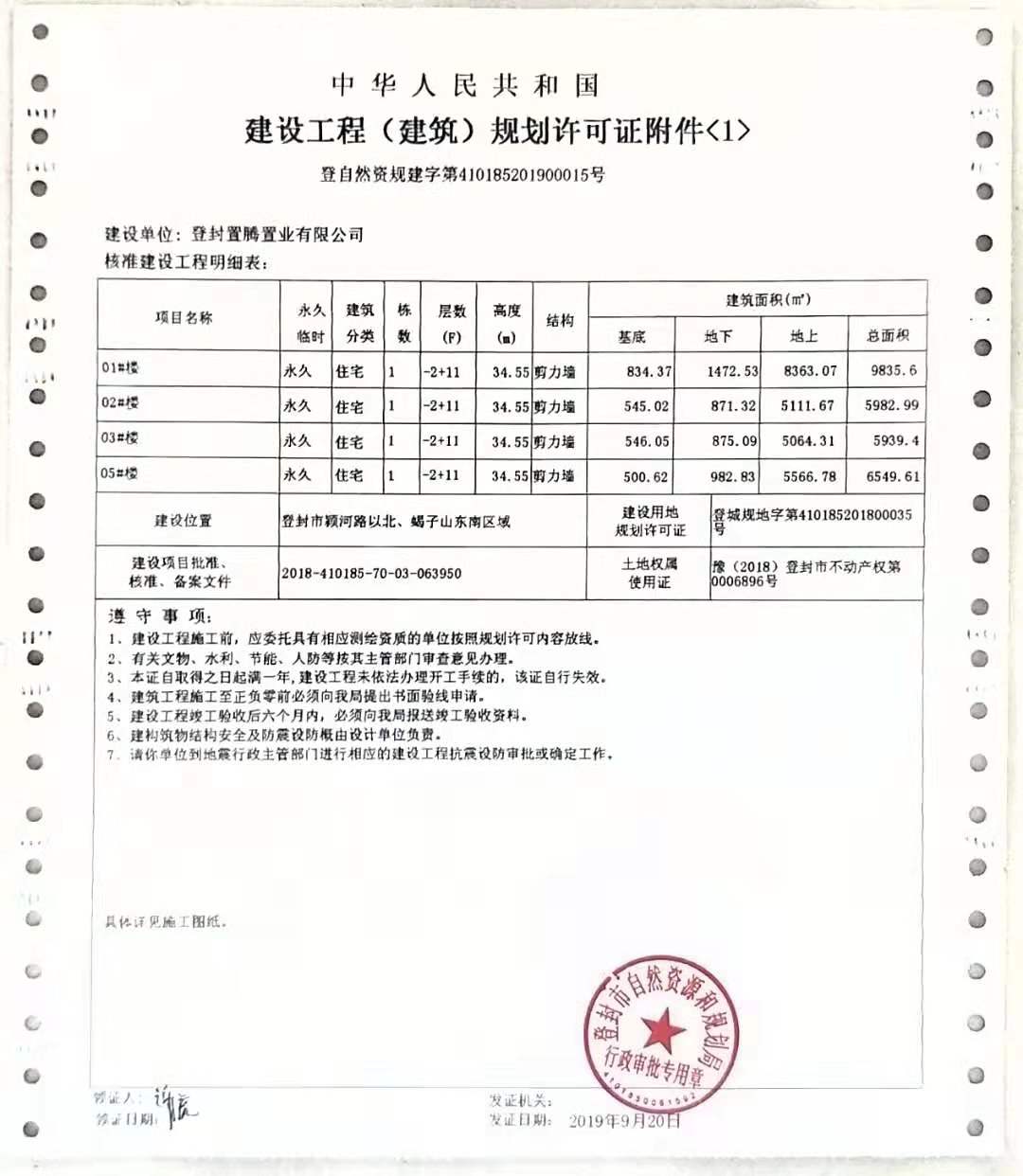 登封市自然资源和规划局关于建业嵩岳府二期地块1项目建设工程规划许可证批后公告