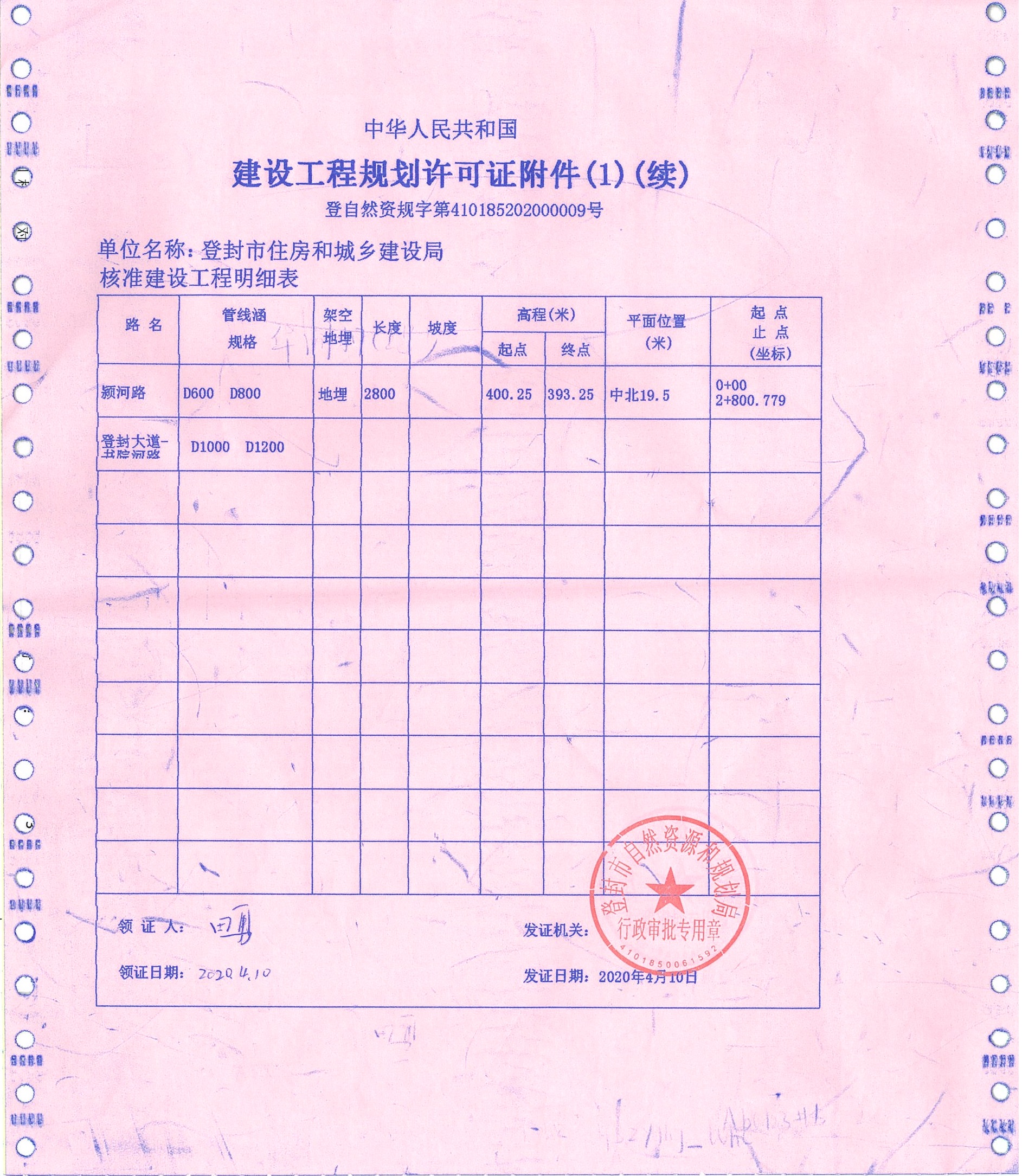 登封市自然资源和规划局关于登封市颍河路(登封大道-书院河路)项目建设工程(道路)规划许可证批后公告
