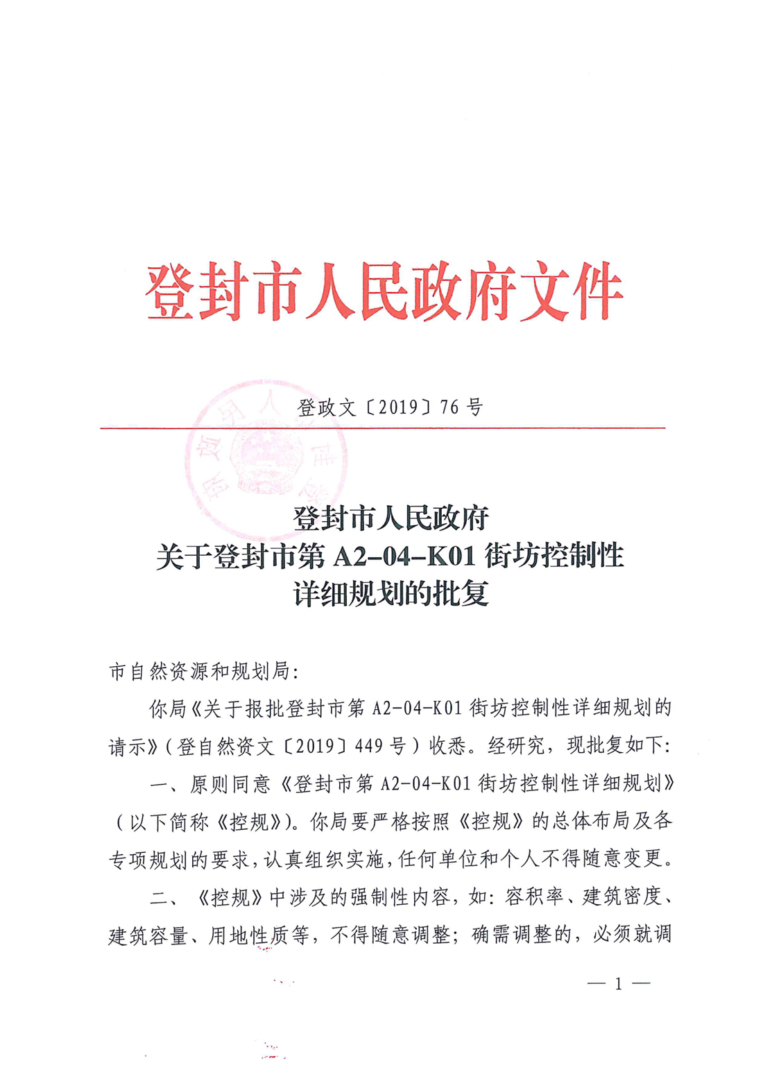 项目名称:《登封市第A2-04-K01街坊控制性详细规划》