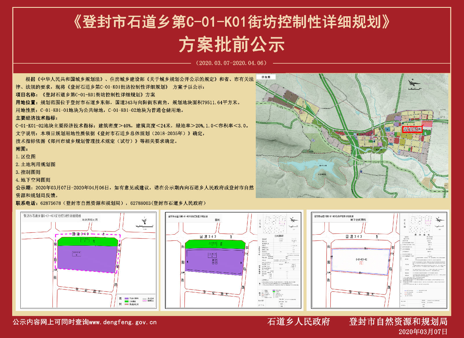 公示内容:《登封市石道乡第C-01-K01街坊控制性详细规划》方案