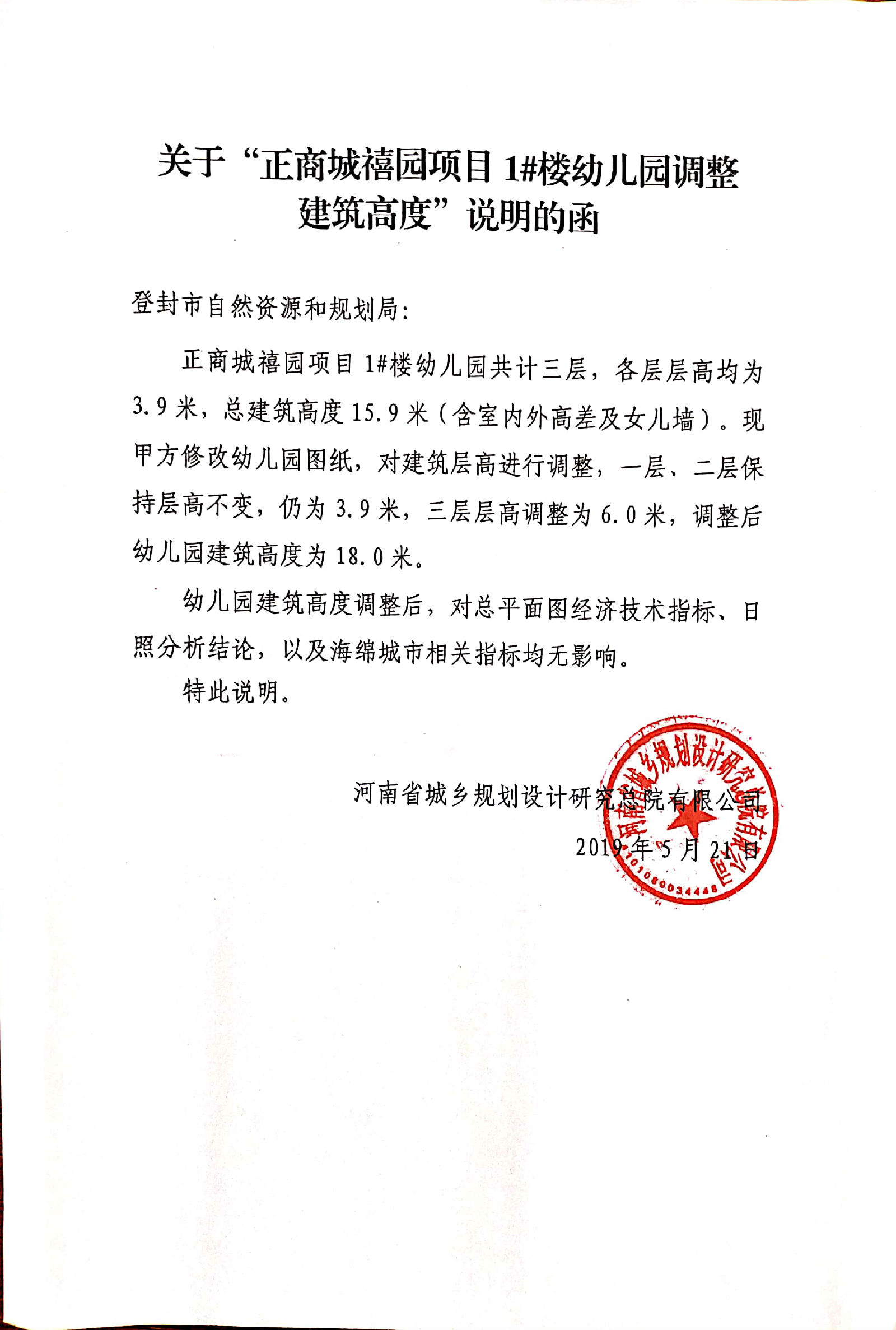 正商城禧园项目已于2018年10月29日取得建设工程规划许可证(证号:登规建字第410185201800033号),现建设单位就1#楼(幼儿园)建筑高度向我局提出变更申请, 依据《中华人民共和国城乡规划法》、《中华人民共和国行政许可法》、《河南省城市规划公示制度》等有关法律法规,予以变更批前公示: