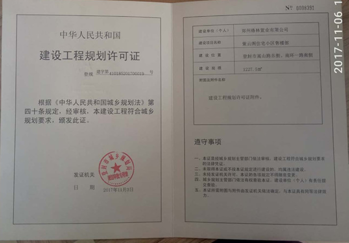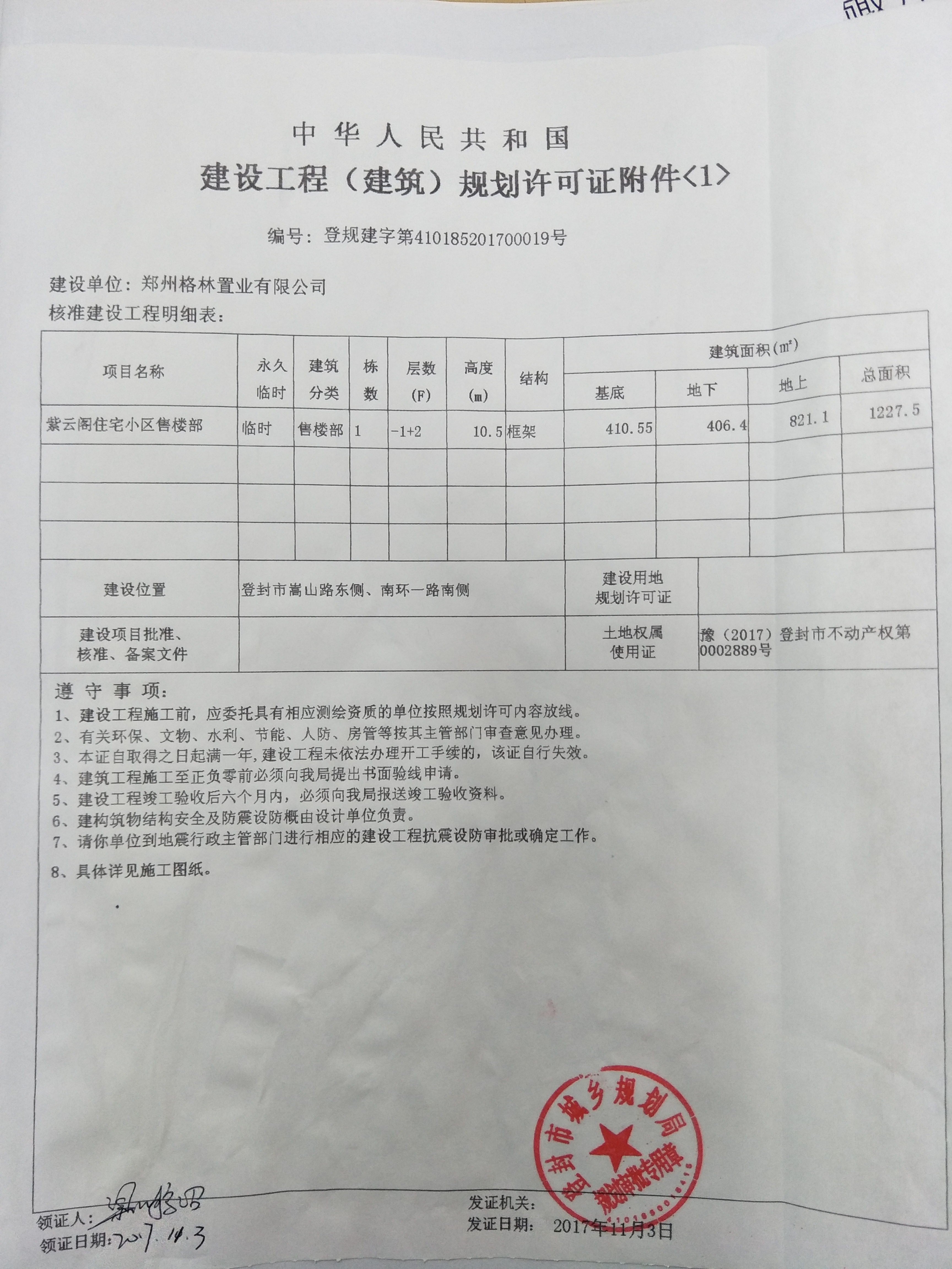 紫云阁住宅小区售楼部临时建设工程规划许可证证后公告