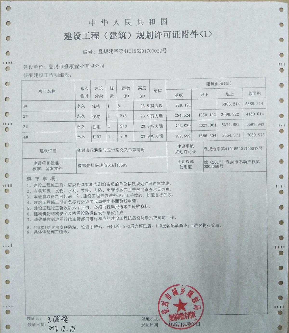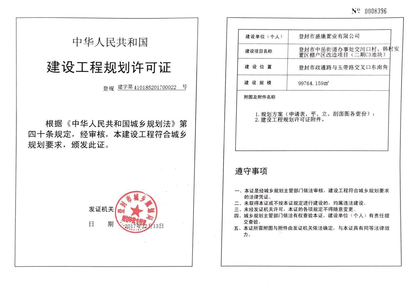 登封市中岳街道办事处交河口村、韩村安置区改造项目(二期C3地块)建设工程规划许可证证后公告