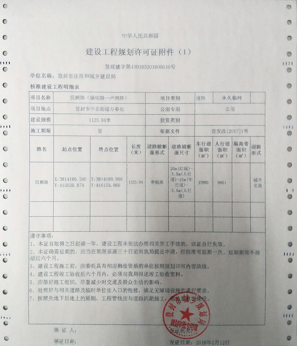 汉阙路(福佑路-卢鸿路)道路建设工程项目建设工程(交通)规划许可证证后公告