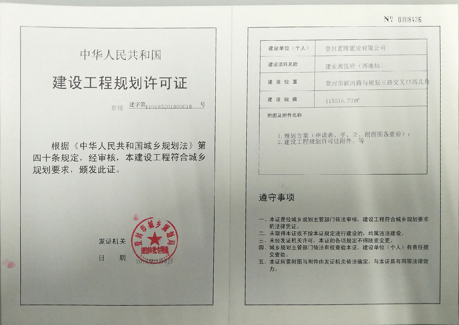 建业嵩悦府(西地块) 建设工程规划许可证证后公告