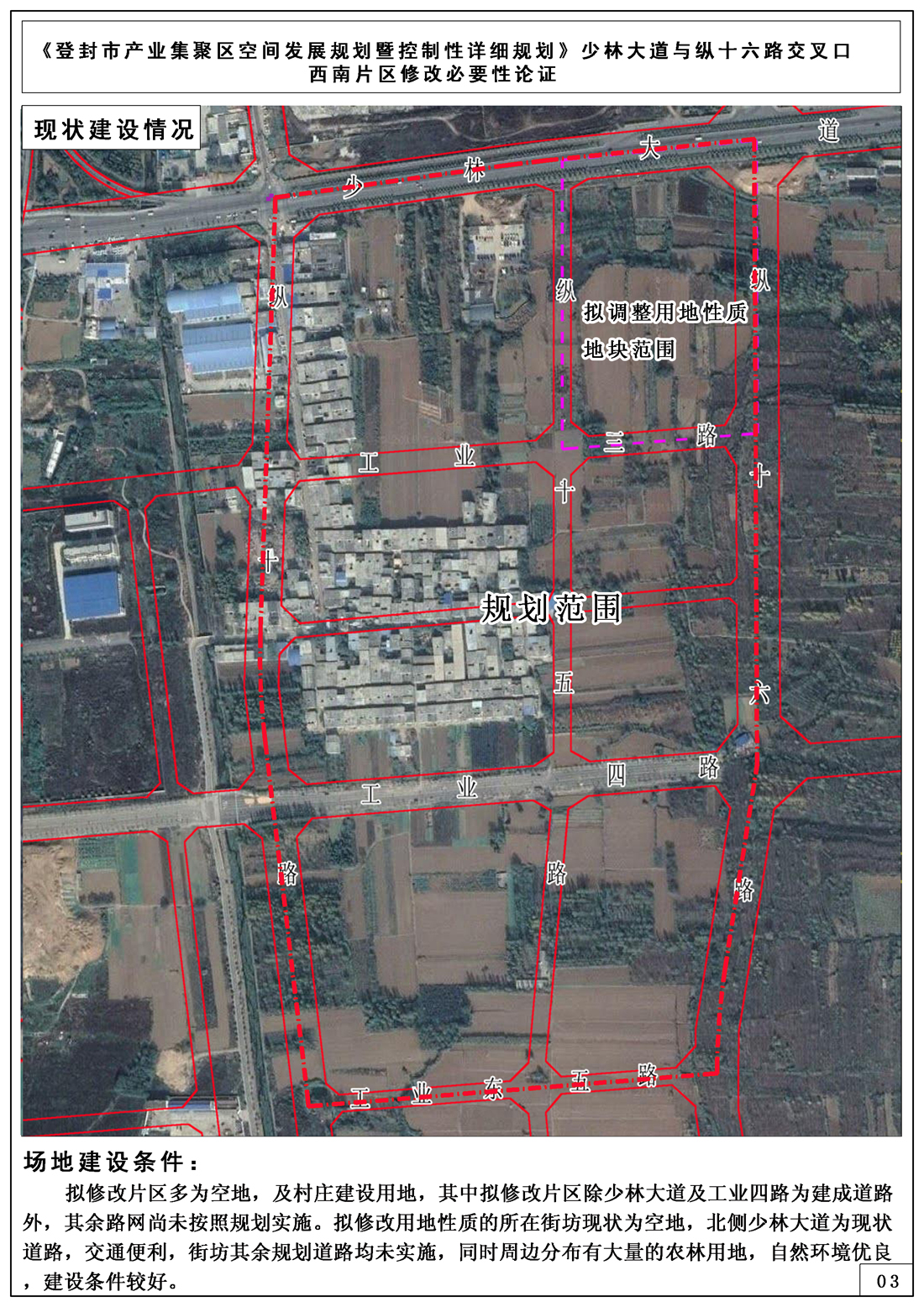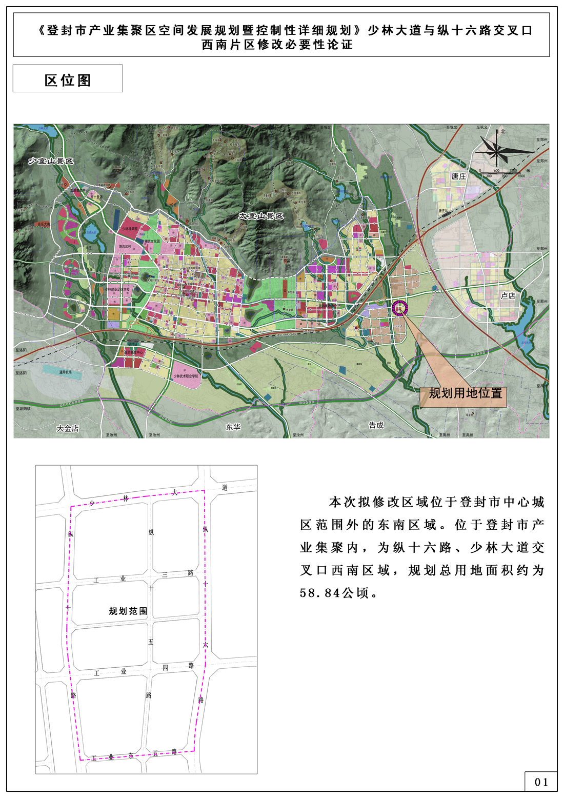 项目名称:《登封市产业集聚区空间发展规划暨控制性详细规划》少林大道与纵十六路交叉口西南片区修改必要性公示