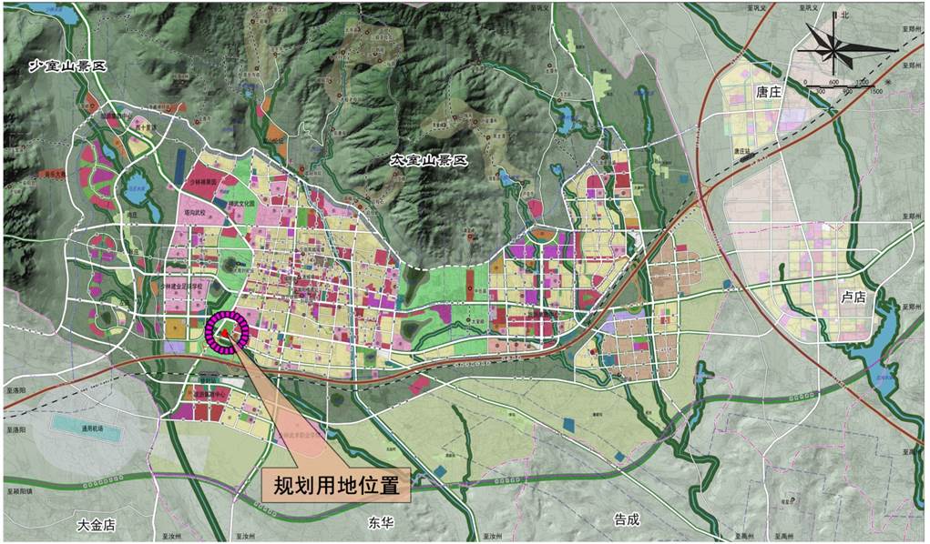 用地位置:登封市嵩阳办事处,登封大道以东,南环一路以南、南二环路以北、常青路以西