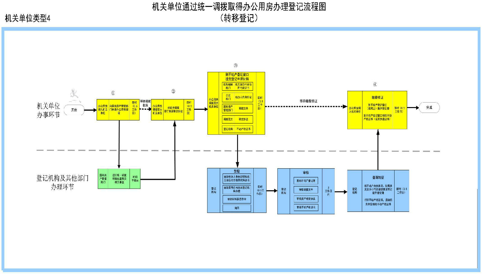 机关单位通过统一调拨取得办公用房办理登记流程图