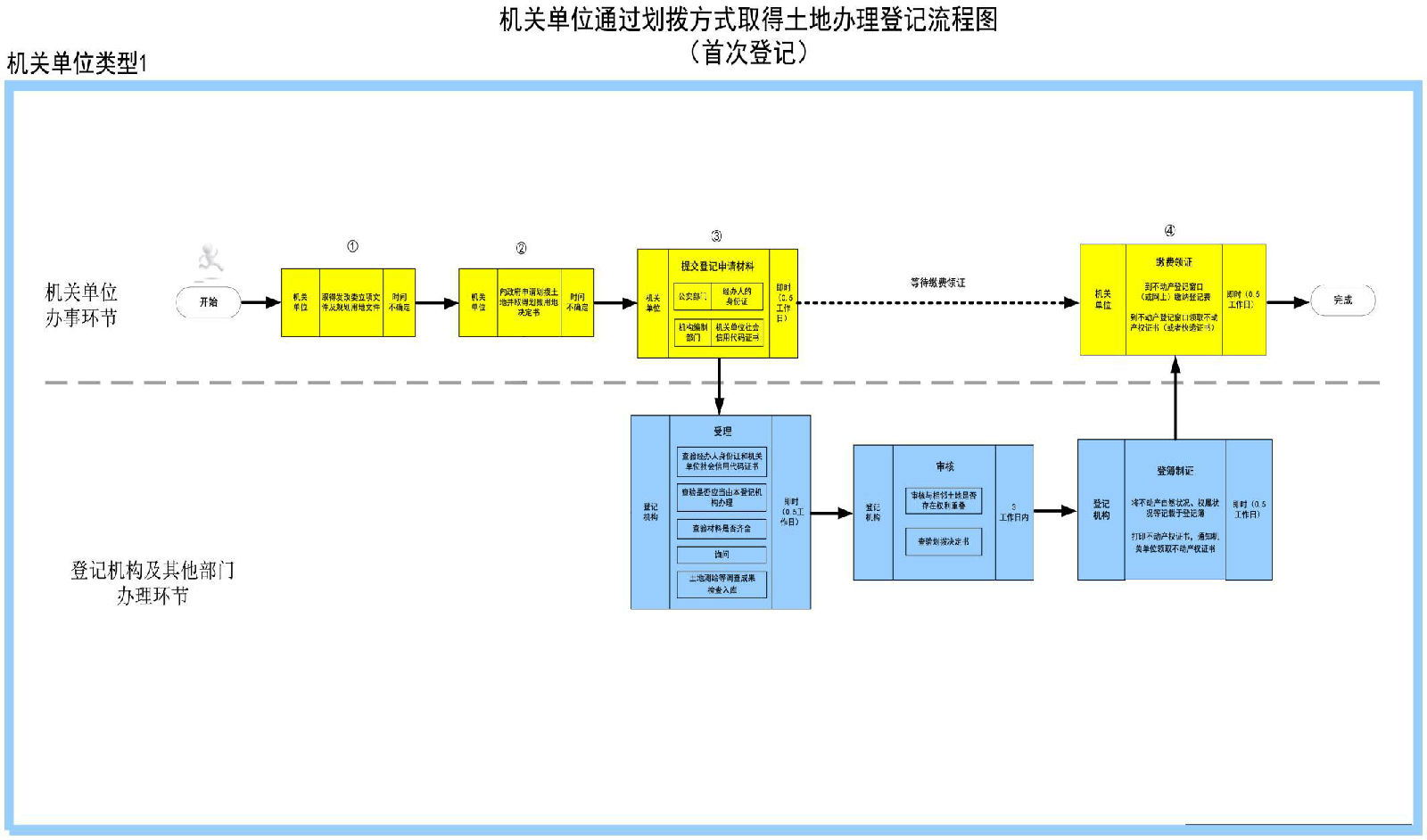 登封市不动产登记中心机关单位通过划拨方式取得土地办理登记流程图(首次登记)