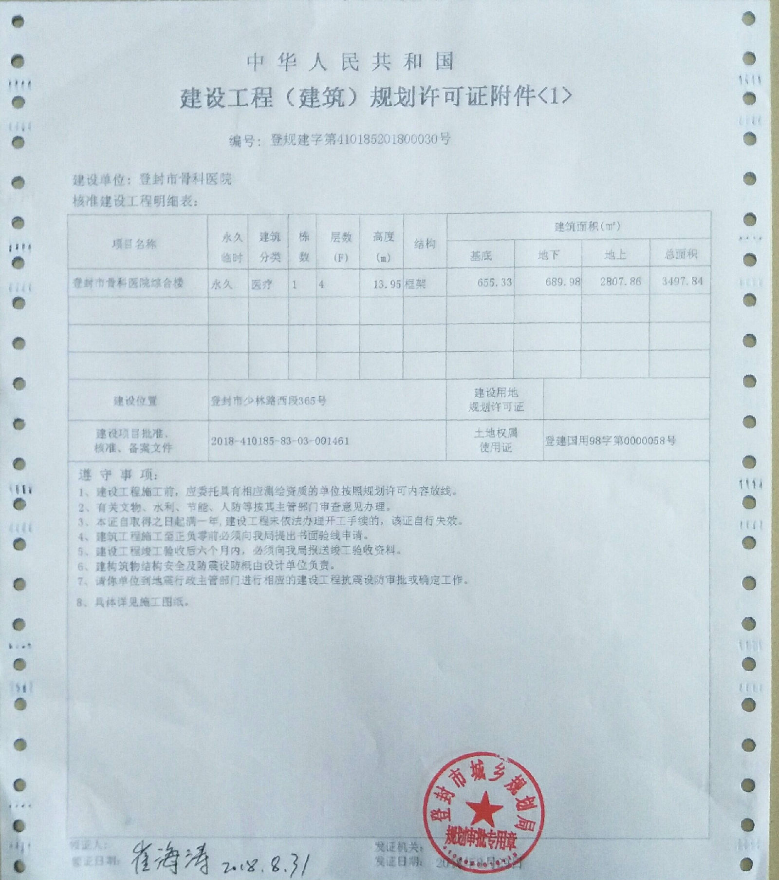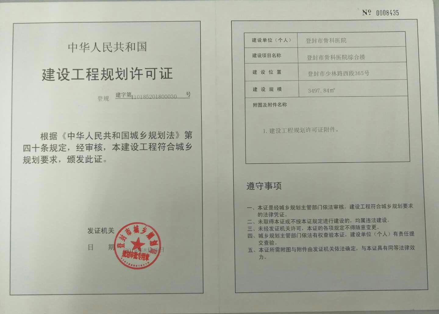 登封市骨科医院综合楼项目建设工程规划许可证证后公告