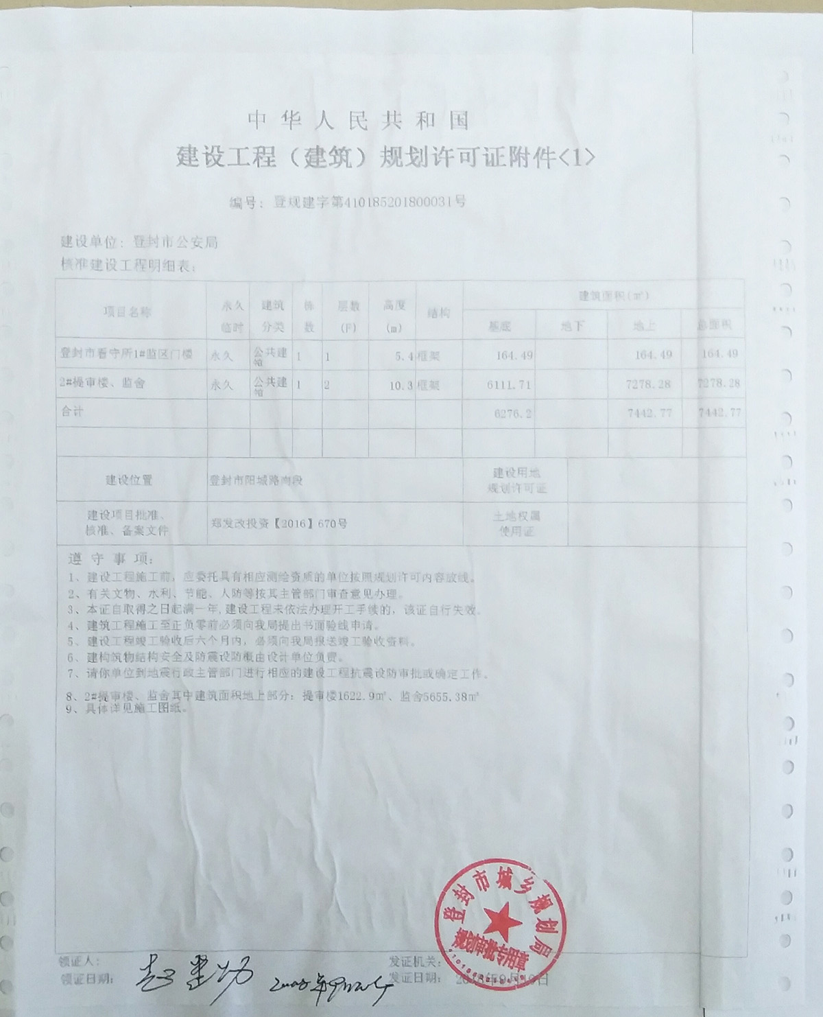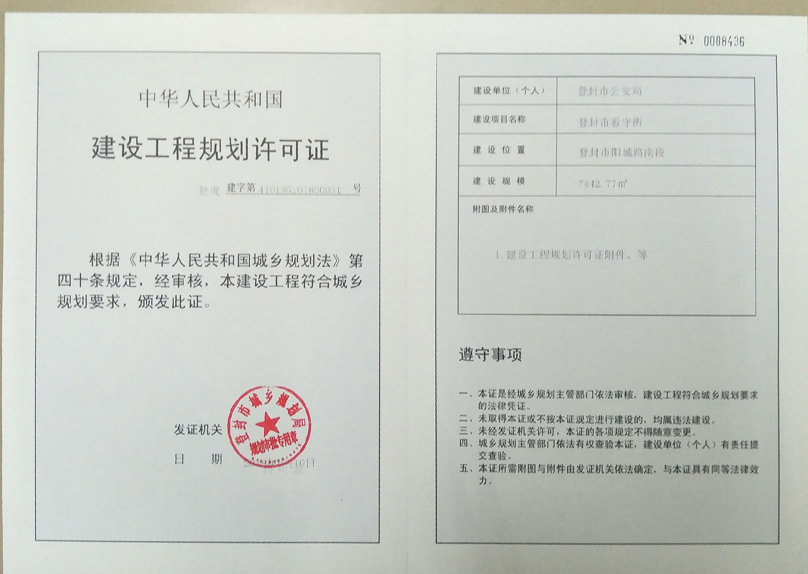 登封市看守所项目建设工程规划许可证证后公告